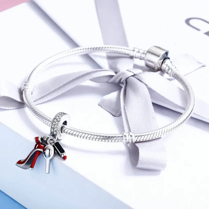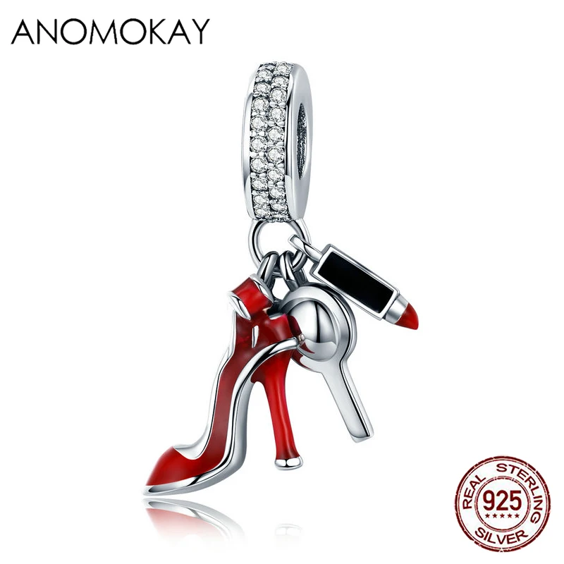 Подвеска для браслета женская из серебра 100% пробы, красная, 925