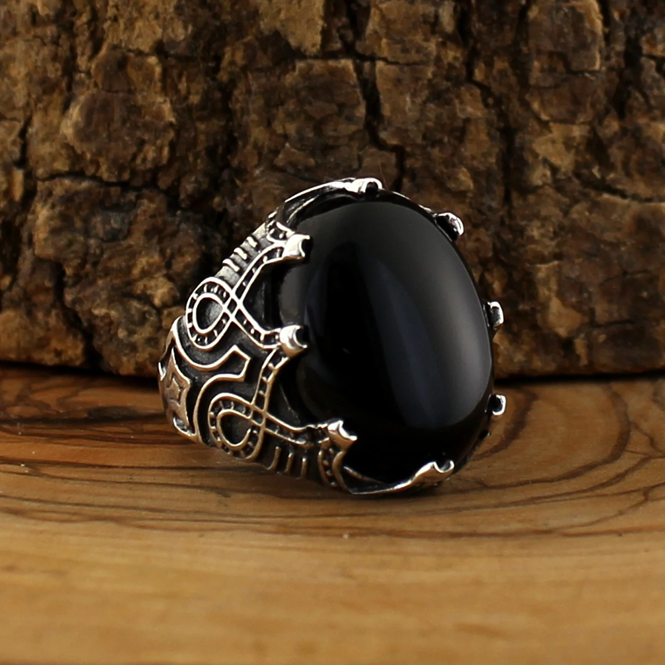 Кольцо мужское из серебра 925 пробы, с натуральным черным ониксом, ...