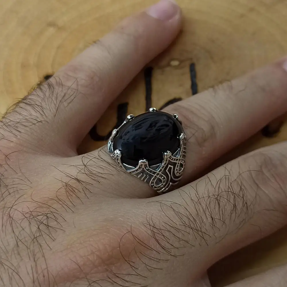 Кольцо из чистого серебра 925 пробы с натуральным камнем для мужчин...