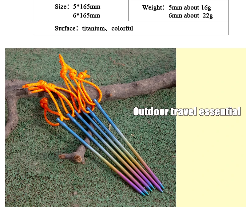 Колышки для палатки из титанового сплава, диаметр вспомогательная Палатка5,06,0 мм, 6 шт.