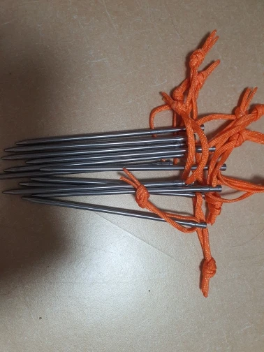 Качественный товар. Полученный товар в течение 23 дней в центральной США, 3 дня после первой оценки, 17 дней до последней оценки. Прямой Спайк обеспечивает хорошую прочность при сгибании, когда вбивается в твердую землю. Тем не менее, маленькая головка обеспечивает меньшую фиксацию для палатки, чем колышки с выемкой или крючком. Важно установить кол на 90 градусов до тяги или немного меньше. Ярко-оранжевый шнур облегчает вытягивание кольев с земли. Это также делает их более видимыми, так что они меньше будут потеряны. Петля Паракорда имеет пять внутренних нитей. Я удалил нити так, чтобы шнур не удерживал так много воды при намокании-только оболочка достаточно прочная и так же видимая. Завязанный узел завязывается в водяной узел. Я несу пару этих кольев в качестве опоры основной линии для твердой/скалистой земли, где легкие v-образные кольи трудно ударить в землю.