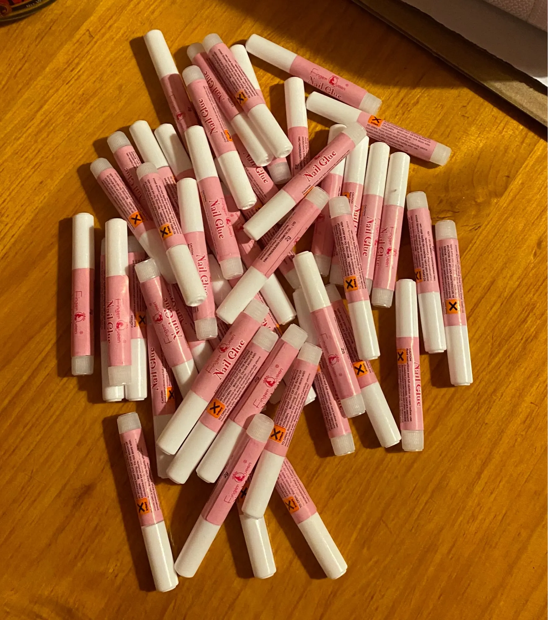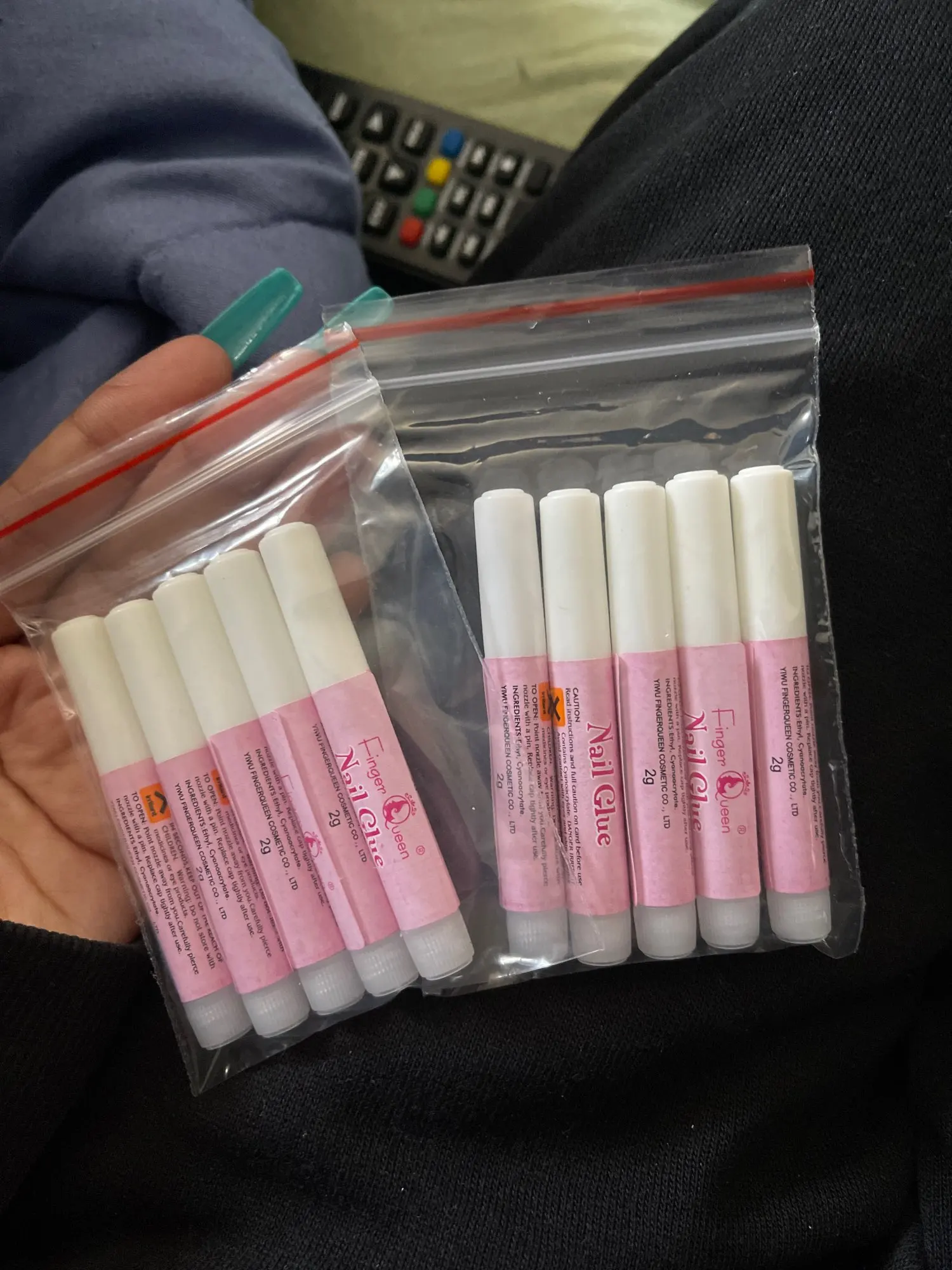 Idk if u can really see the line in the second picture but they are filled up a little more then halfway they took a really long while to come but the seller was very easy to communicate with. When I opened it up it squirted and got on my fingers and they instantly got hard and almost got stuck together so yes the glue is SUPER strong so be careful on where u put it and when u first open it up it does have a strong smell it the glue is SUPER strong so I like it lol