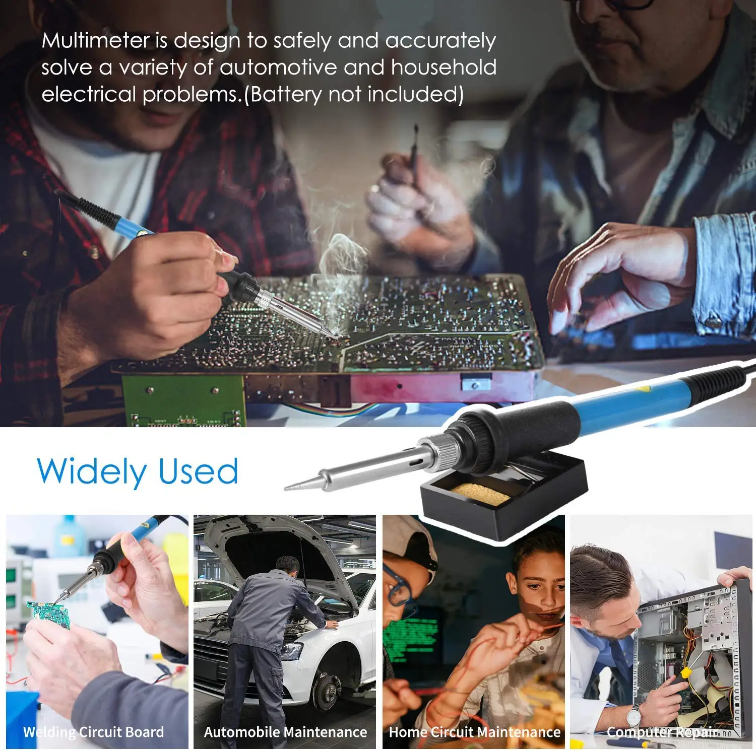 1: комплект паяльника поставляется с кнопкой включения и кнопкой регулировки температуры, поэтому его можно легко и свободно включать/выключать или регулировать нужную вам температуру.2: Изготовлен из технологии точной печати и комплект для пайки можно спечать при высокой температуре и долго использовать.3: Если вы хотите узнать, как припаять, этот стартовый набор паяльника подходит для ваших нужд. Это очень удобно и компактно.4: нескользящая Мягкая резиновая ручка для максимального комфорта и безопасной пайки.