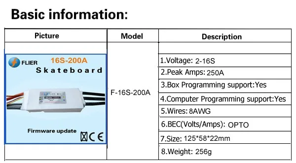 Flier 16S 200A бесщеточный контроллер двигателя esc для rc скейтборда