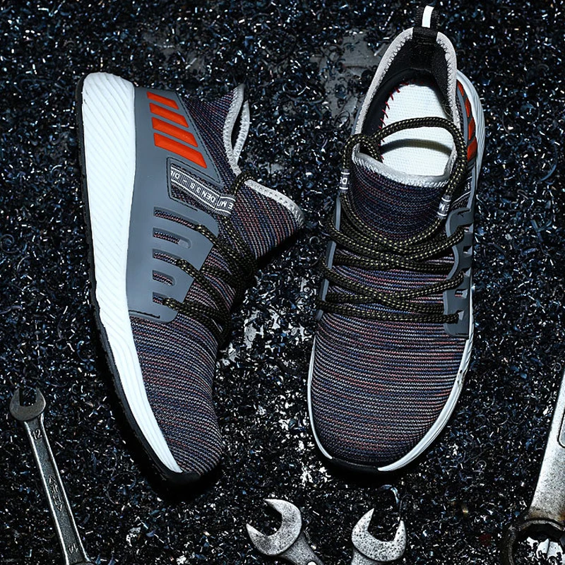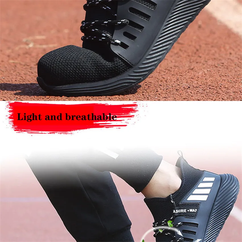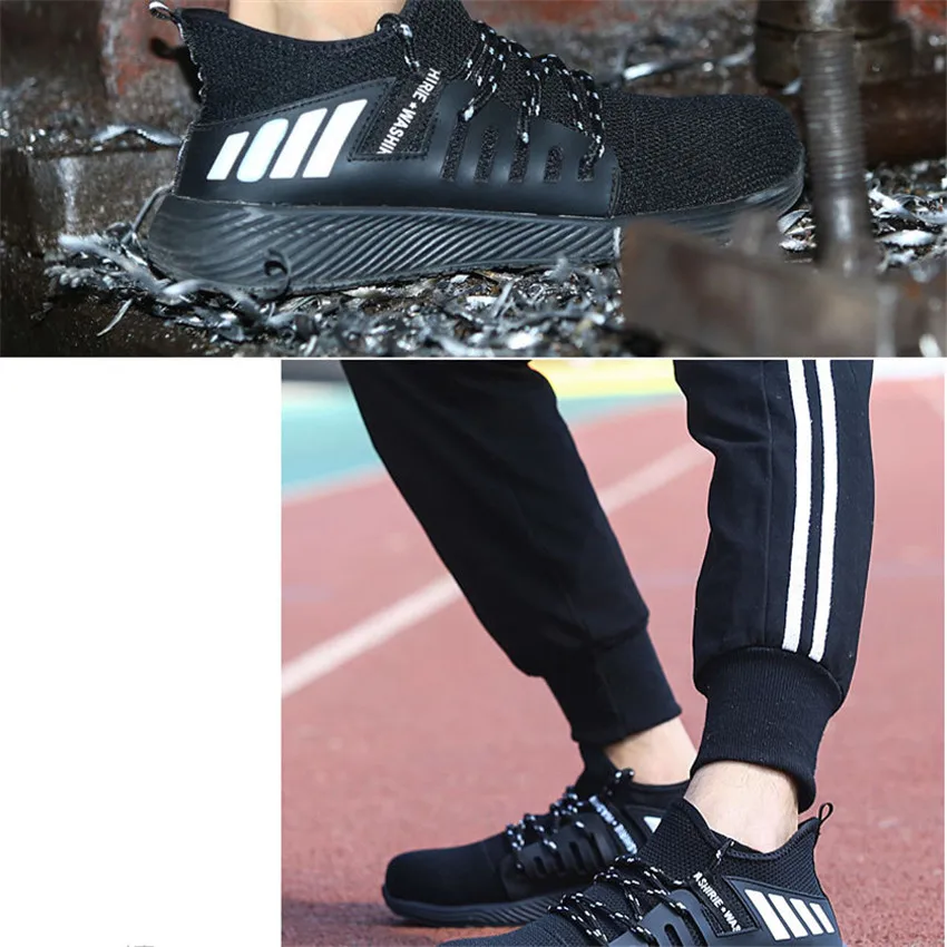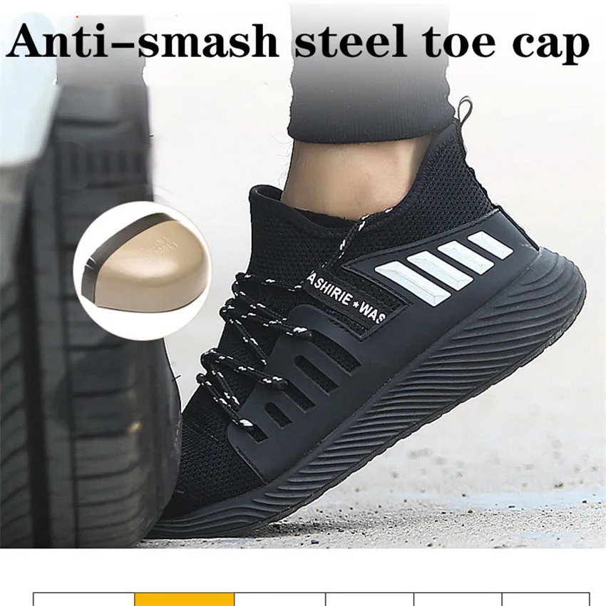 Летняя безопасная теннисная рабочая обувь, Мужская защитная обувь со стальным носком, рабочий запуск, светильник, работа, продажа одиночных сетчатых проколов