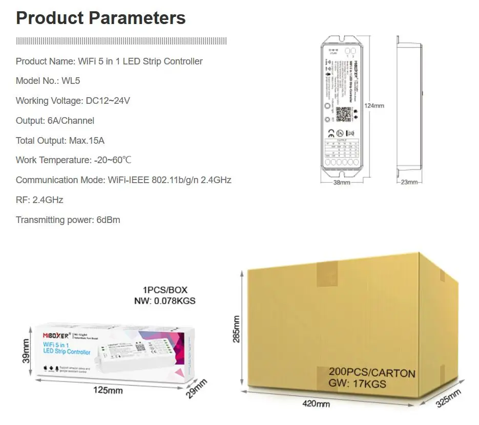 MiBoxer WL5 5 в 1 светодиодный Wi-Fi контроллер для RGB RGBW RGB CC...