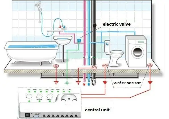 Даже система без клапана, центральный блок все еще будет работать, Обнаруживает утечку воды и звуковой сигнал предупреждения