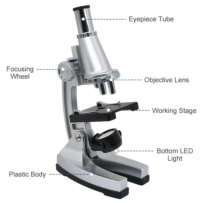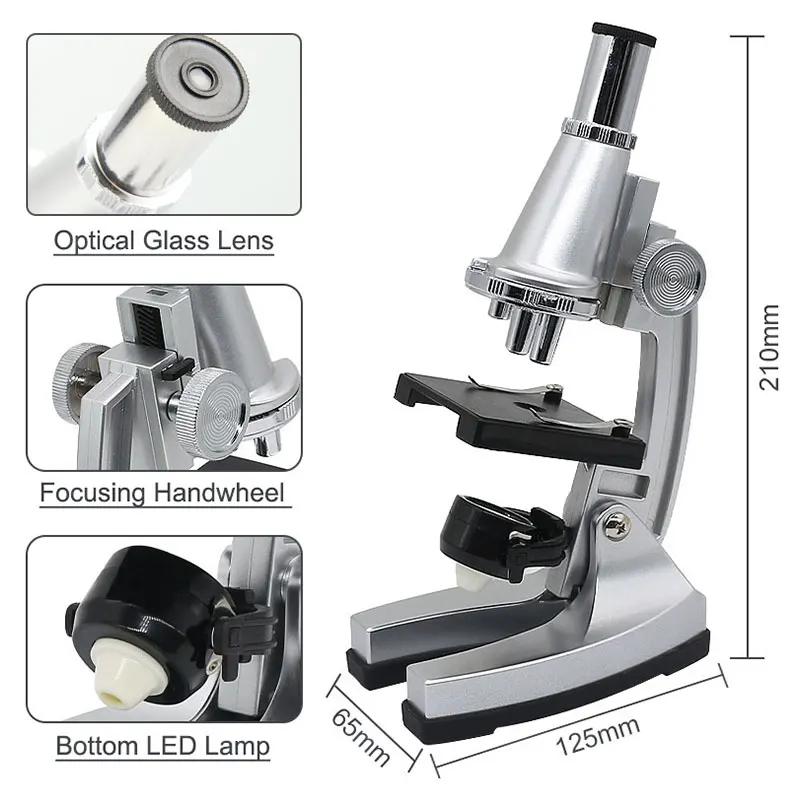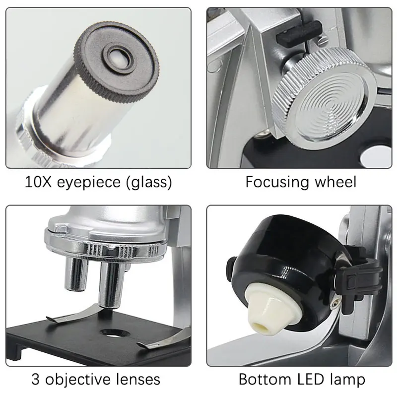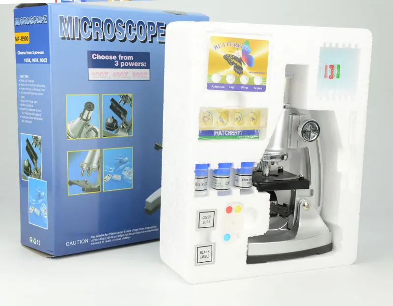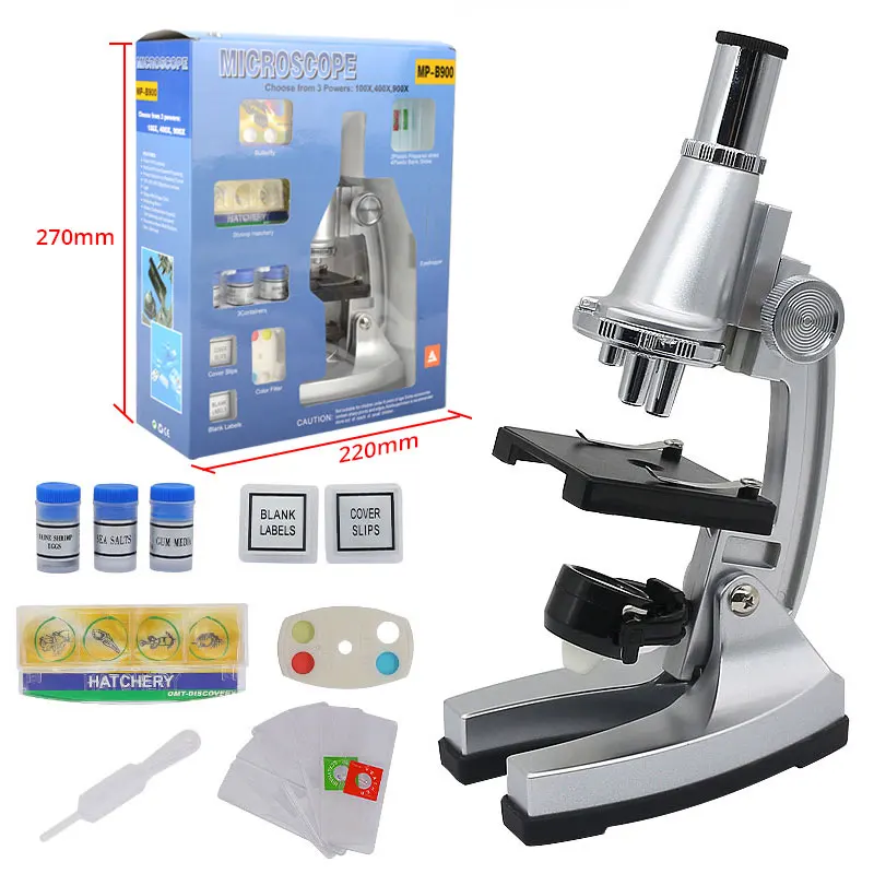 Микроскоп детский с подсветкой, 100x, 400x, 900x