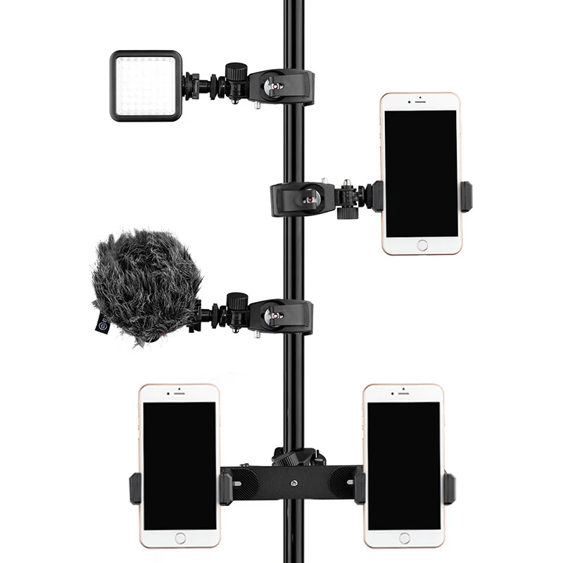 Подходит для всех ситуаций, может быть установлен на штативе или любом другом объекте. Головка вращается, может регулироваться по горизонтали по вертикали, просто потяните аксессуар. Превзошел ожидания. Очень хороший и прочный.