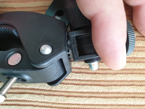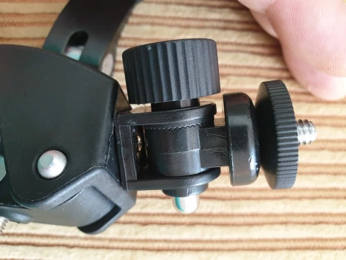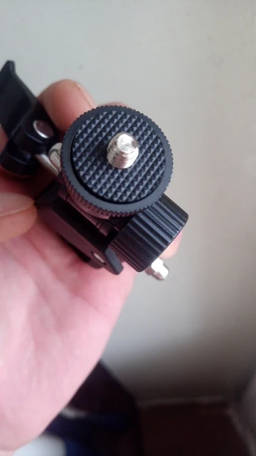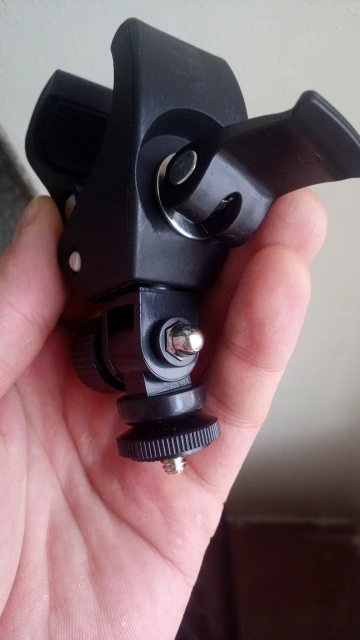 Я не отвечаю! Не работает для меня. Крепление зажима... ок. Но деталь «Шея», которая действительно удерживает камеру, сделана для «wiggle» (рис. № 3). Это означает, что ваша камера будет очень шаткой. Я не знаю, почему производитель сделал это. Хотел ли он «поглотить» вибрации, просвечивая некоторую «весну» под соединительной головкой-кто знает. Кроме того, штырь, который проходит через зажим, не плотно установлен и может легко выпасть! (Рис. #5) Это может привести к тому, что вся сборка... хорошо «разборка», и вы можете в итоге ослабить камеру! В целом, это не выглядит безопасно для меня, и я не буду использовать его. Надеюсь, это поможет кому-то не совершить ту же ошибку, что и я.