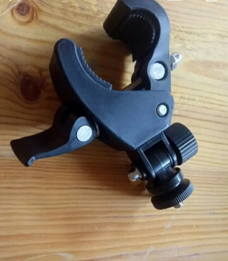 Удобная держалка на трубу - хоть на руль, раму или на стойку. Если еще брать с комплектом переходников - можно на нее вешать софтбоксв или другой свет. Эксцентрик выглядит крепким, только не надо гайку крутить, она декоративная. Надо сам эксцентрик крутить. Привезли быстро