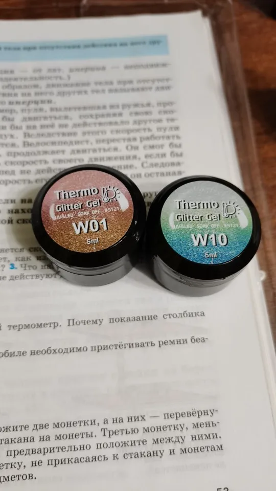 термо гель ложится в один слой, меняет цвет так как на фото даже без подложки) баночка полная и густой консистенции.