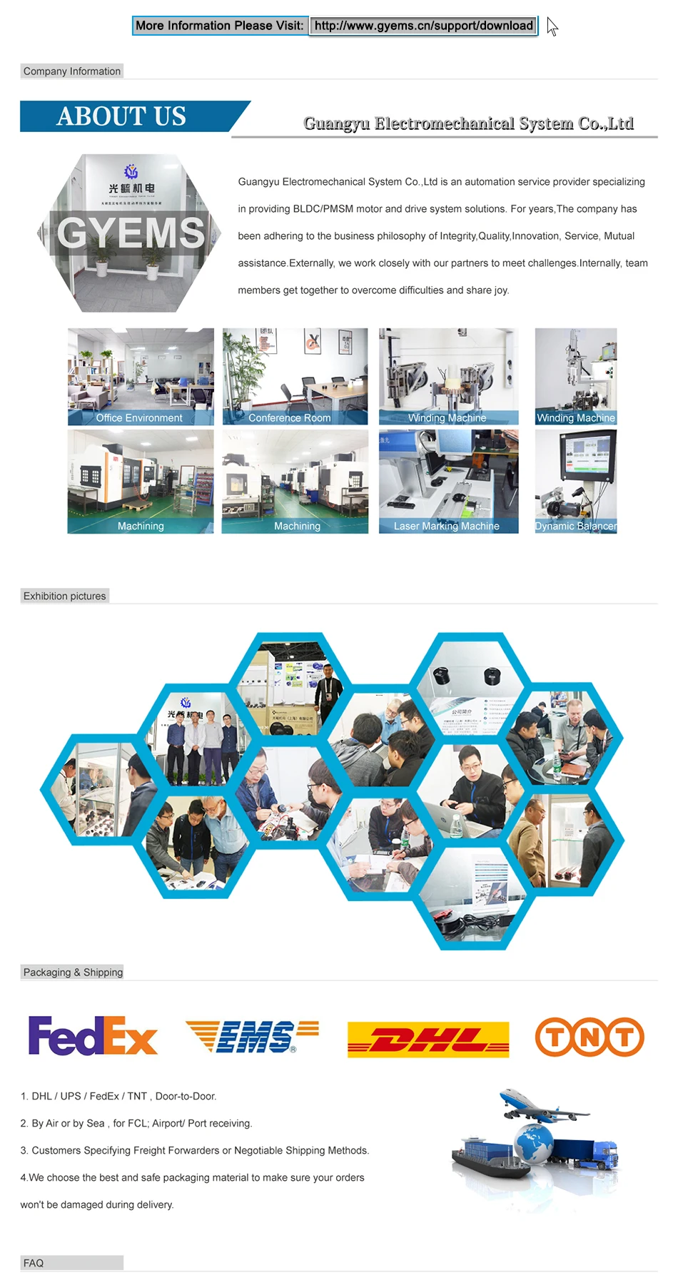 1 В: сколько времени занимает Доставка? О: обычно 5-7 дней для образцов; 25-30 дней для массового заказа и 45-50 дней для индивидуальных продуктов. Вне курса, точное время выполнения зависит от проекта 2 в: Каковы Ваши условия оплаты? О: мы принимаем paypal, T/T и L/C; Оплата <= 1000USD, 100% заранее. Оплата> = 1000USD, 30% заранее, баланс перед пересылкой. 3 В: предоставляете ли вы бесплатный образец? О: он depands. Если у нас есть долгосрочное сотрудничество и вы разместили официальный заказ, мы можем поставить образец нового продукта для тестирования. 4 в: Какие продукты вы предоставляете? О: Мы главным образом обеспечиваем постоянный магнит щеткой dc моторов (BLDC и PMSM) и системы привода двигателя 5 В: Можете ли вы принять OEM и ODM заказ; Что насчет MOQ? О: Да, мы принимаем OEM или ODM (включая двигатель и приводную систему настройки);MOQ depands по запросу. Например, просто измените логотип и обмотку двигателя, MOQ всего 50 шт.; Если изменить программное обеспечение или структуру двигателя; MOQ не менее 500 шт. 6 в: у вас есть план развития агента? О: мы приветствуем профессиональные и квалифицированные организации для распространения нашей продукции, мы предоставим вам отличную прибыль и всестороннюю поддержку. Если у вас есть другие вопросы, Пожалуйста, свяжитесь с нами! Назад на главную страницу!