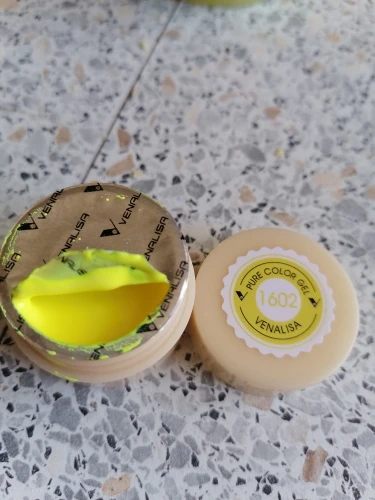 Цвет немного отличается,он больше лимонный.Товар соответствует описанию.Трэк не частично отслеживался.Достаточно густой,не жидкий.Правда резкий запах присутствует.Пришел приблизительно за месяц.Баночка маленькая.Но на первый взгляд качество хорошее,думаю можно наносить и как гкль лак,и рисовать.Пока не пробовала в работе.Но обязательно закажу еще.