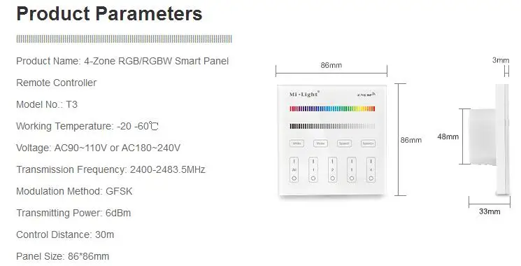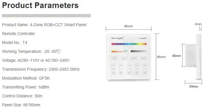 Беспроводная светодиодная смарт-панель Mi light T1T2T3T4B0B1B2B3B4B8, дистанционный пульт CTRGBRGBWRGB + CCT, 2,4G контроллер освещения