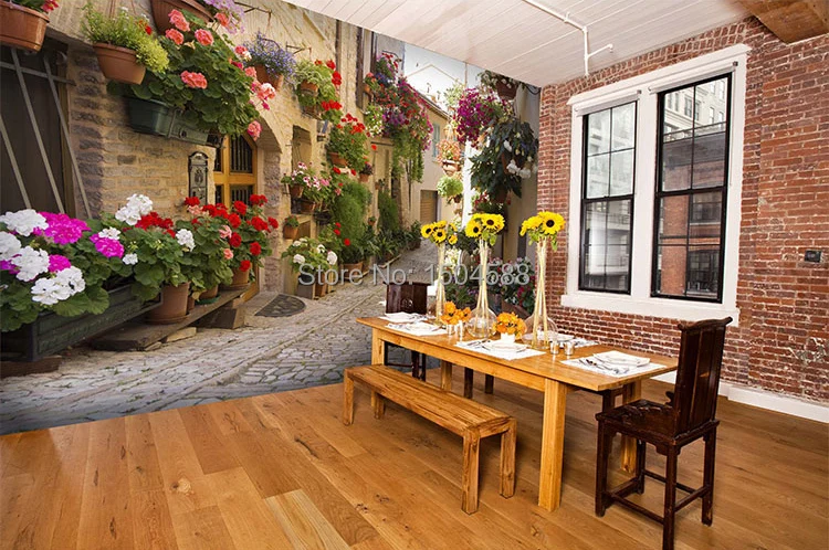 3D фотообои с цветами в переулке, влагостойкое покрытие для стен, столовой, гостиной, домашний декор