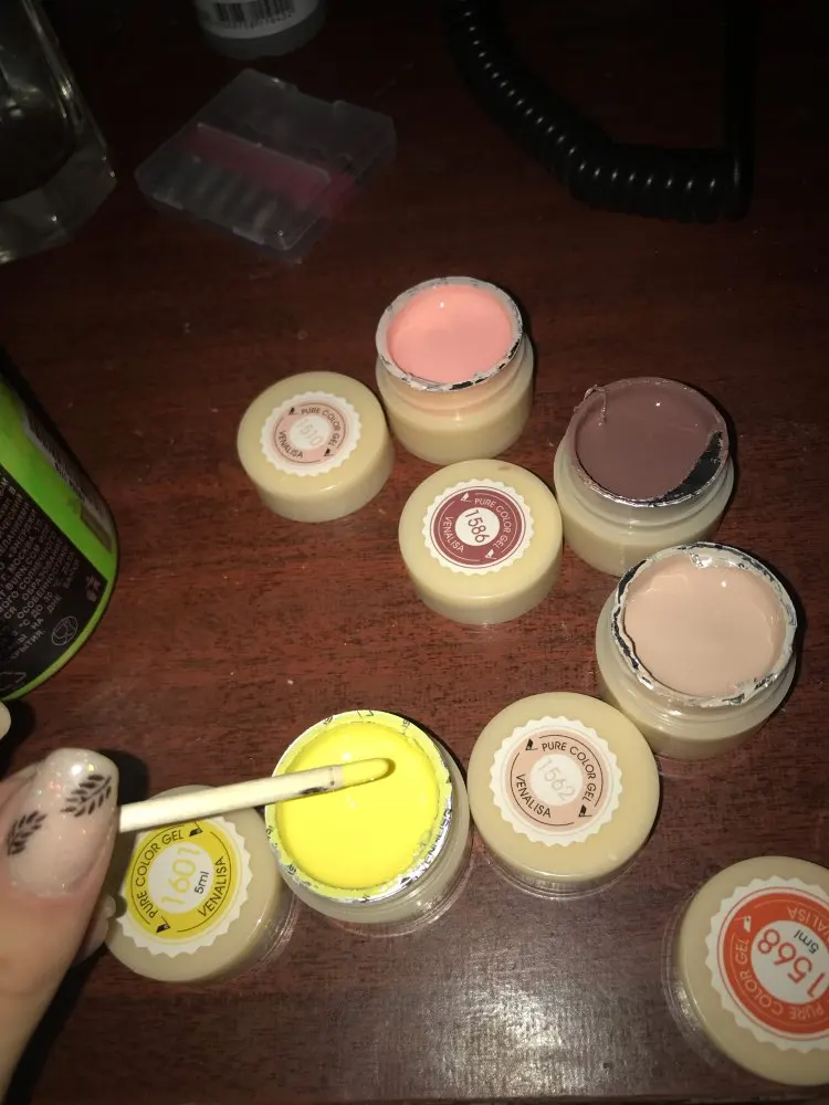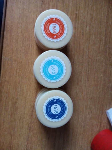 Хорошие гели. Достаточно густые для рисования, как самостоятельное покрытие использовать не стоит, не ровно ложится, градиент тоже тяжко делать, тонкие линии получаются отлично. Ярче чем на картинке, оттенки 1586, 1562 и 1510 отличаются от фото продавца, оранжевый и желтый оооочень яркие. Наполненность более чем приемлемая. Долго мучалась с тем, чтобы снять фольгу, чтобы руки были чище стоит подождать какое-то время пока гель не стечёт и запастись салфетками и жидкостью для снятия липкого слоя или спиртом.