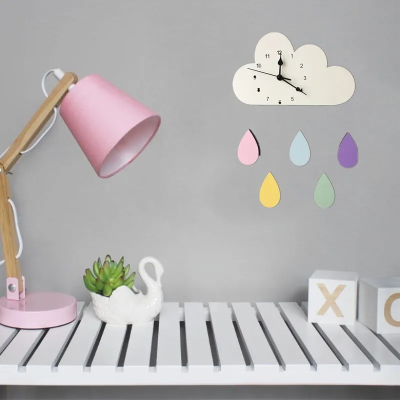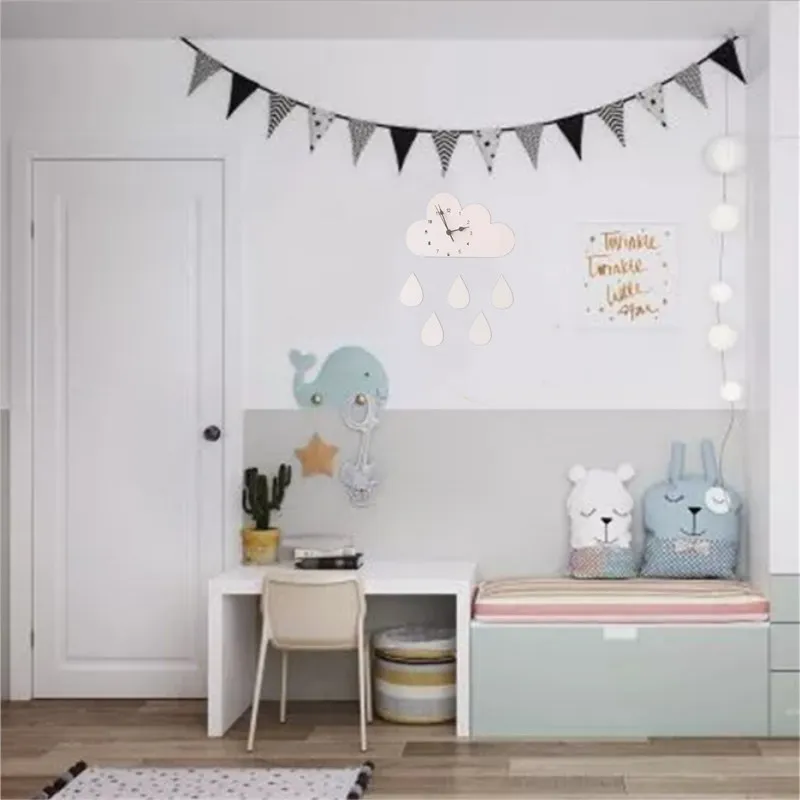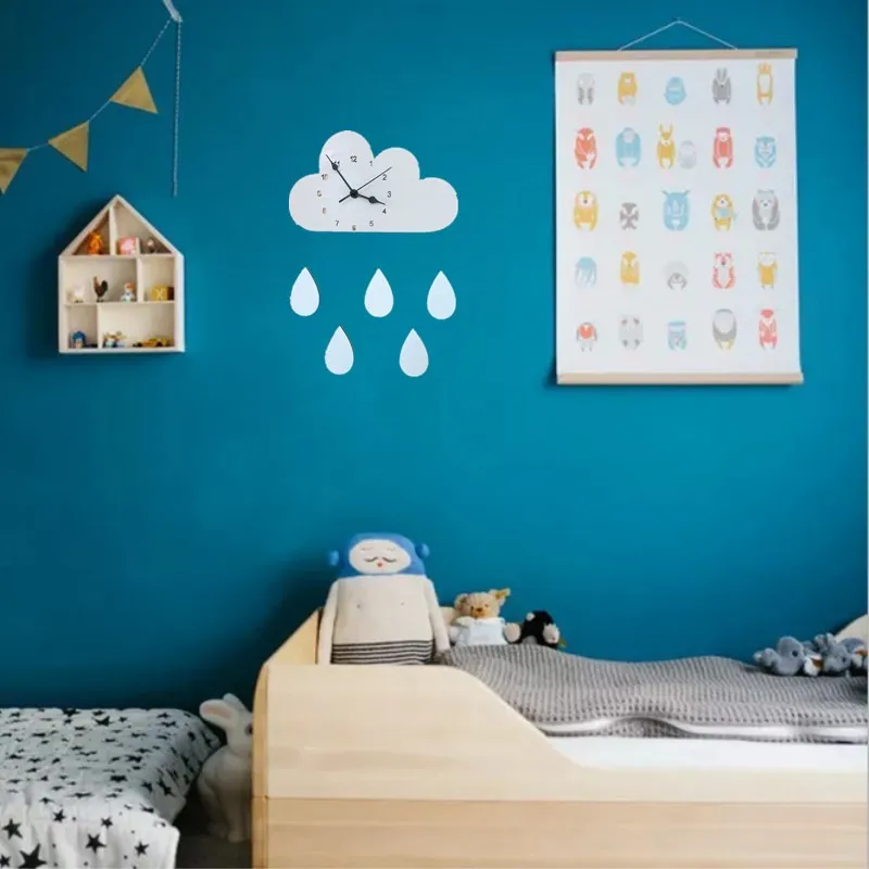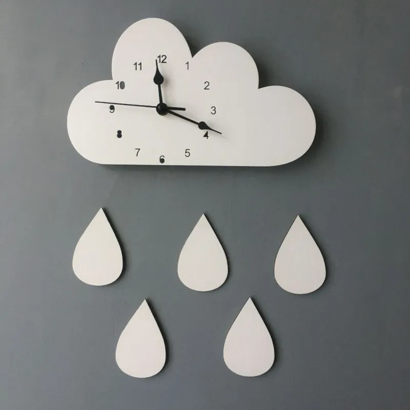 Настенные часы в форме облака с каплями дождя, настенные наклейки, деревянные украшения для детской комнаты, бесшумные часы, домашний декор