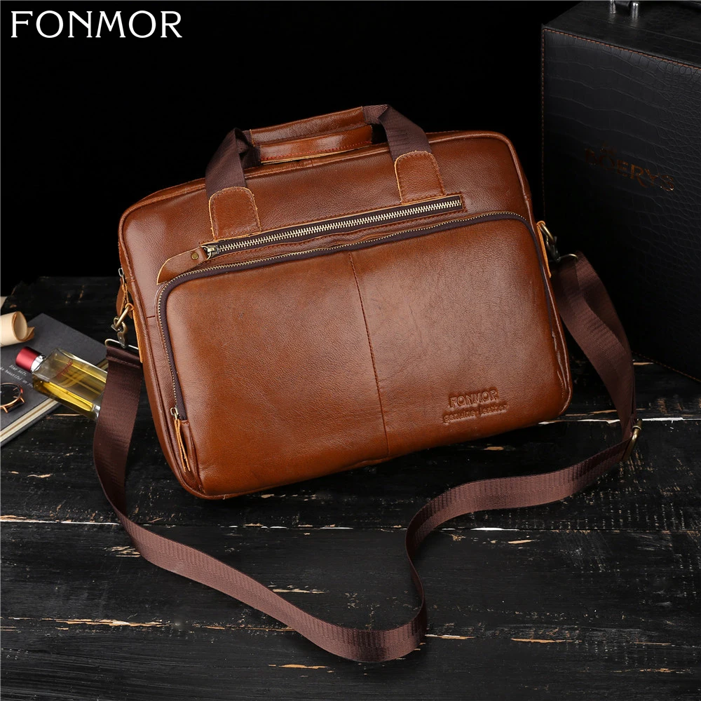 Мужская сумка-мессенджер FONMOR, брендовый портфель из натуральной кожи, вместительная сумка для ноутбука, 2019