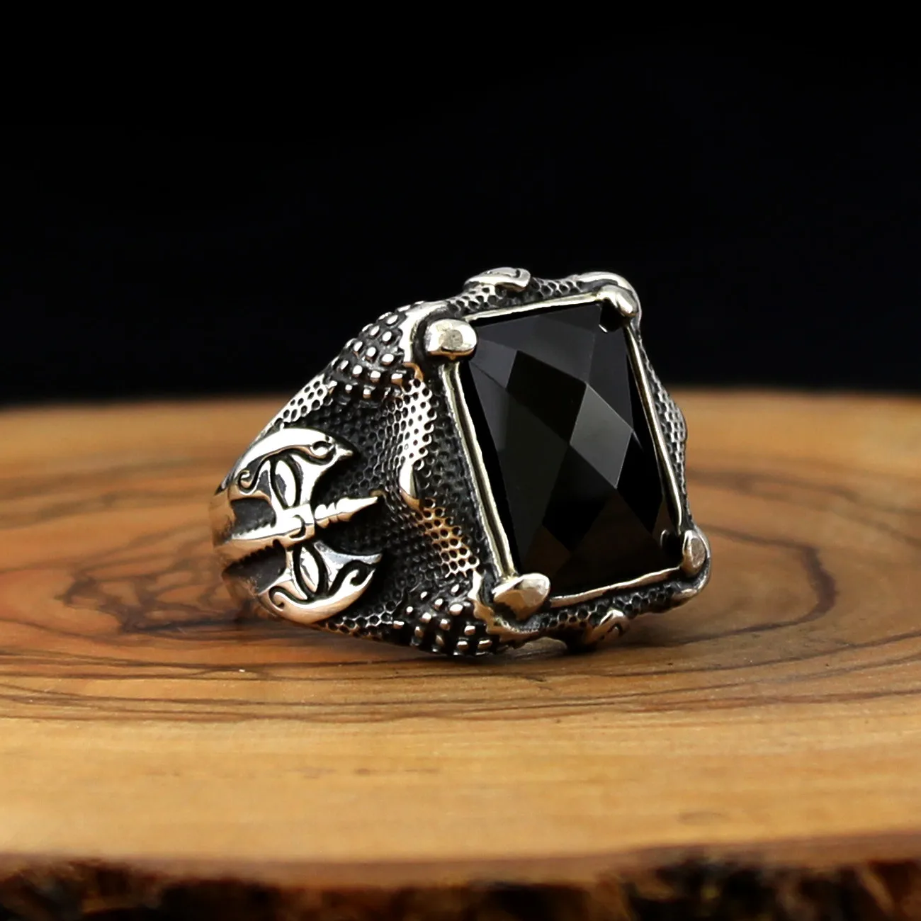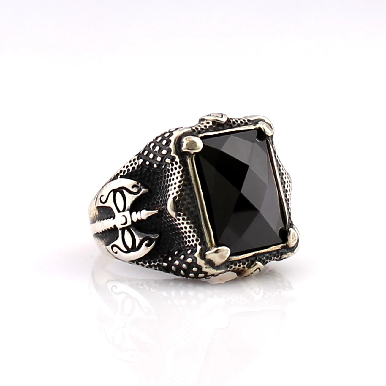 Мужское кольцо из серебра 925 пробы с ониксом без камня