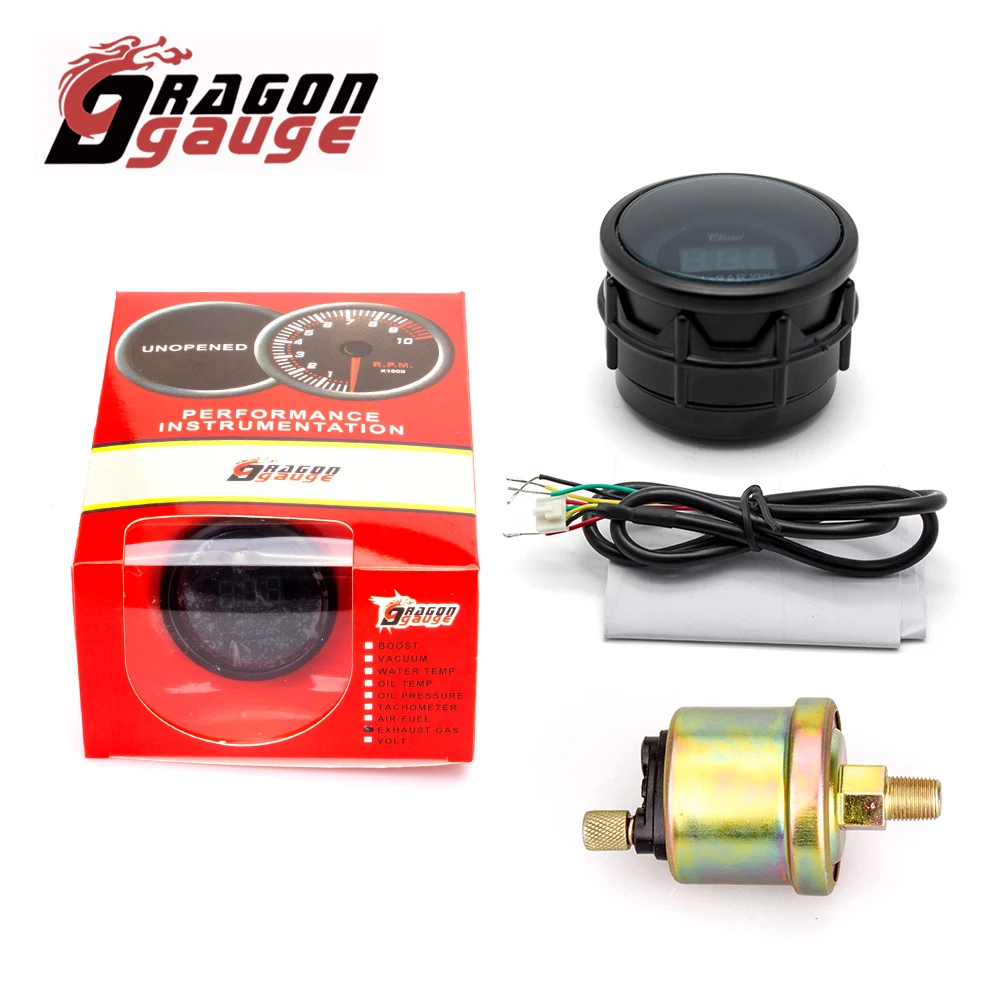 DRAGON Заводские продажи 52 мм измеритель давления маслаМанометрдатчик цифровой дисплей с функцией вольтметра Автомобильный Универсальный 12 В