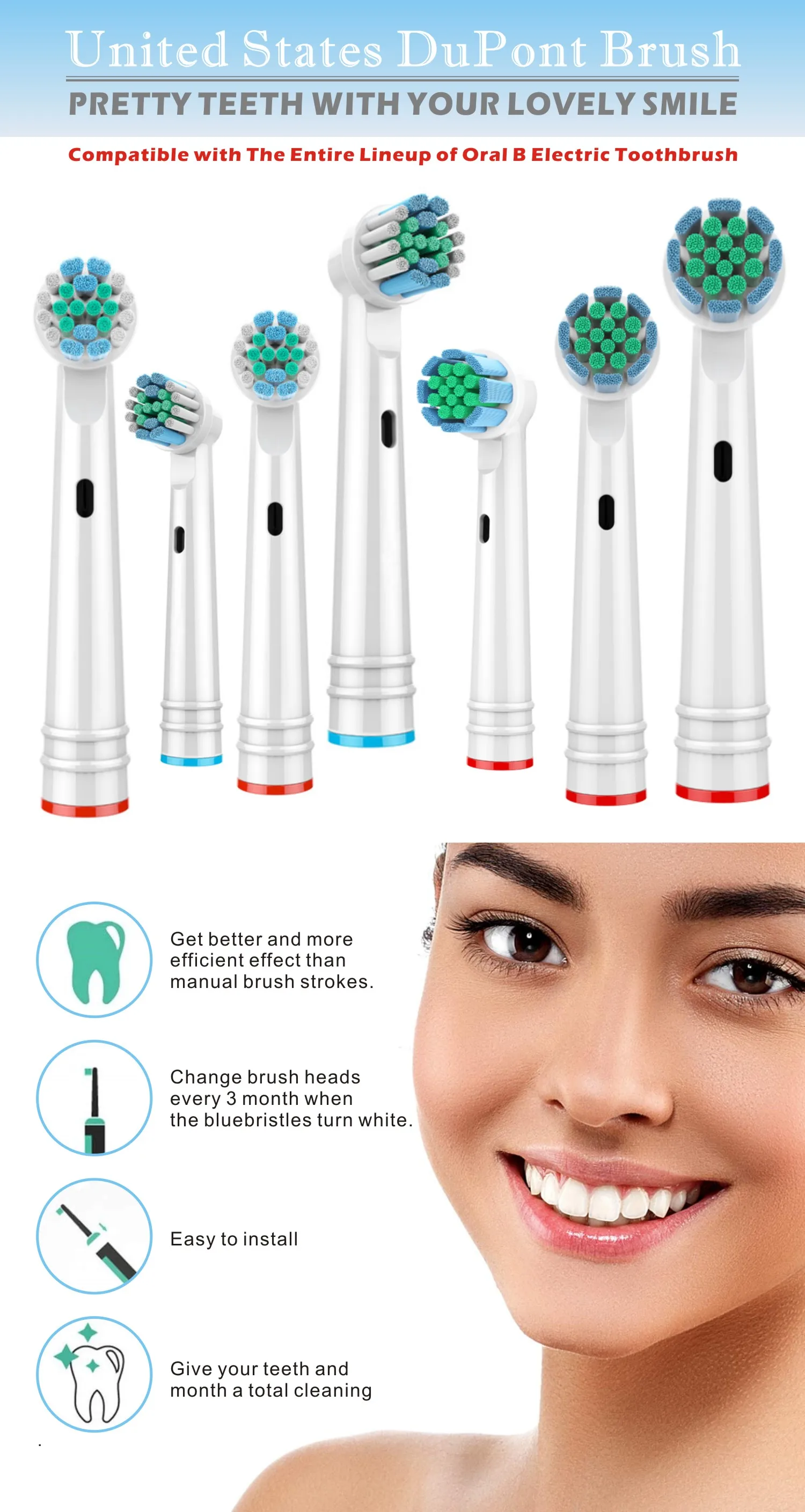 1. Каждая головка зубной щетки используется в течение 2-3 месяцев без выпадания щетинок;
