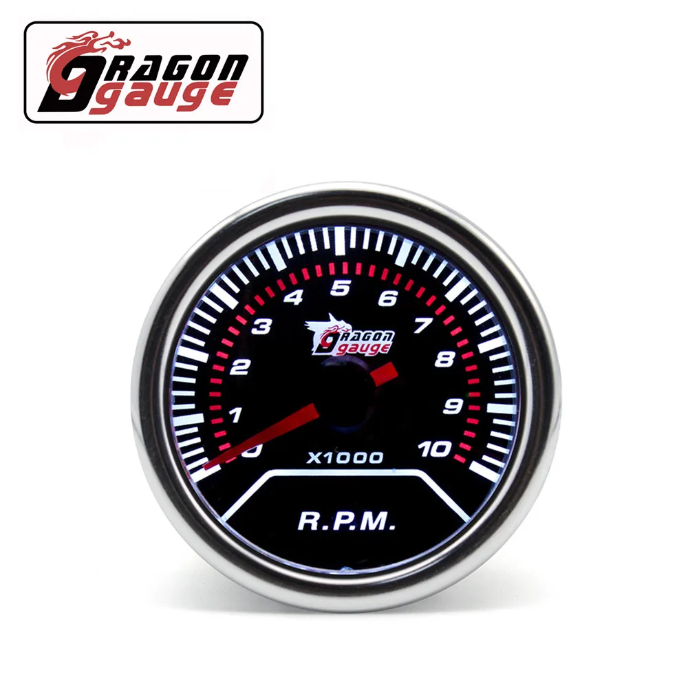 「 Тахометр DRAGON 「 52 мм, измеритель оборотов в минуту, указатель отображения 0 ~ 10*1000 об/мин, автомобильный манометр с белой подсветкой подходит для автомобиля 12 В