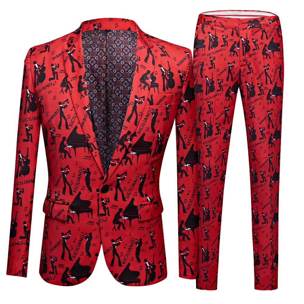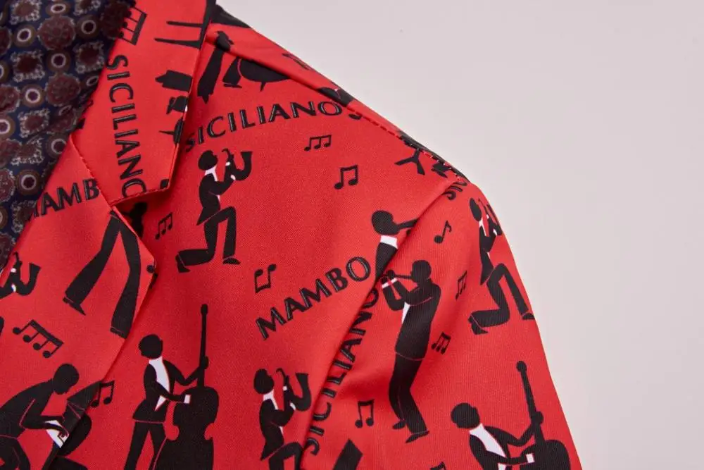Мужской костюм с ярким принтом вечерние Джак с одной пряжкой, приталенный, с черным принтом