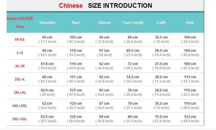 (48,4 дюйма) Азиатский размер XL =Размер M США=RU Размер 44-46