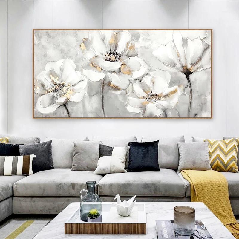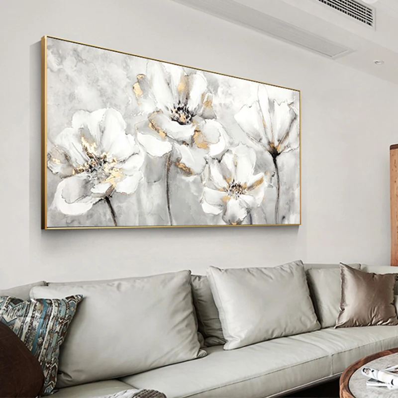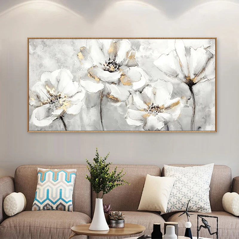 100% ручная роспись абстрактный белый цветок художественная живопис...