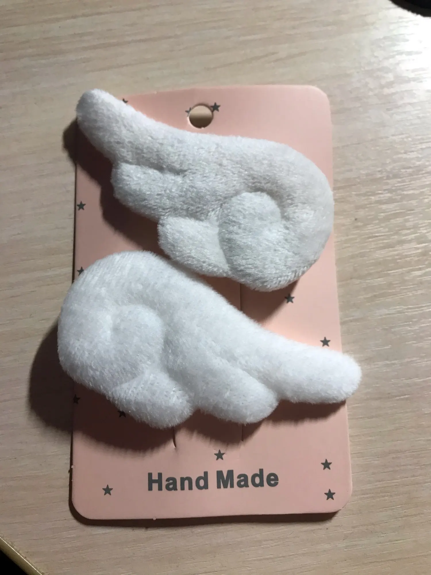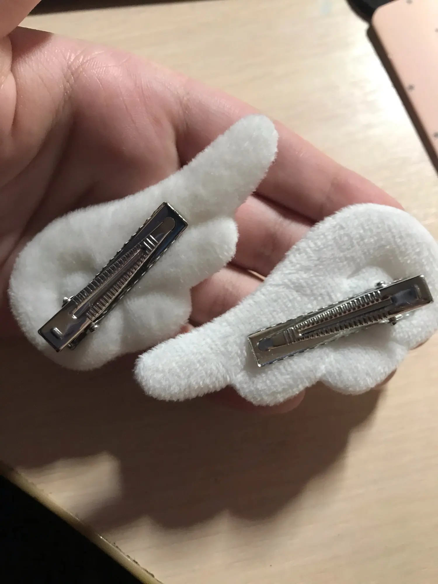 Очень милые заколки крылышки! Качество отличное! Заколки выглядят точно как на фото, основа зажимы, а крылья мягкие. Размер соответствует описанию. Очень быстрая доставка! Большое спасибо! ^_^