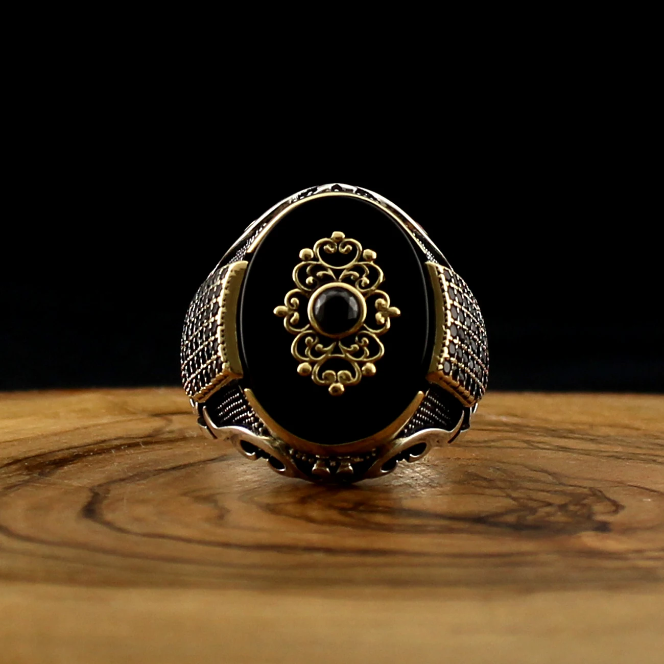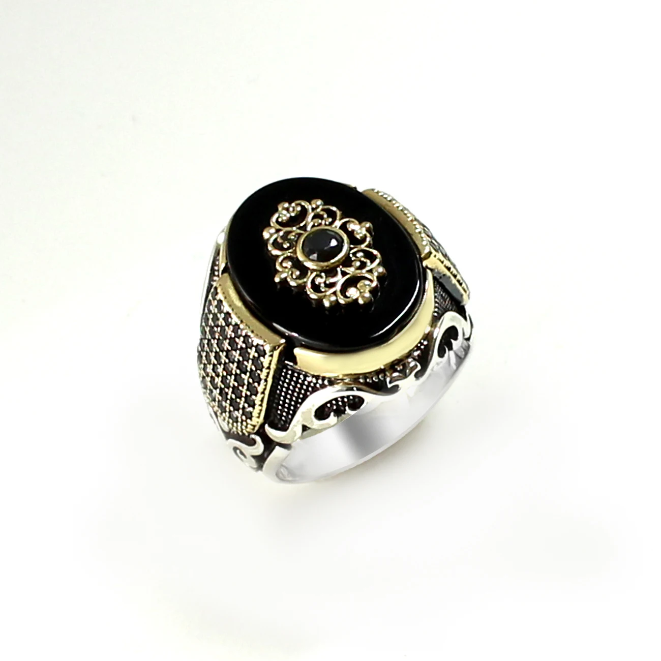 Турецкий Стиль Чистый Настоящий Стерлингового Серебра 925 Натуральный Камень Кольцо Для Мужчин Женщин Высококачественные Ювелирные Изделия Панк Ретро Мода Старинные Ручной Работы Подарок Циркон Оникс Агат Аксессуар