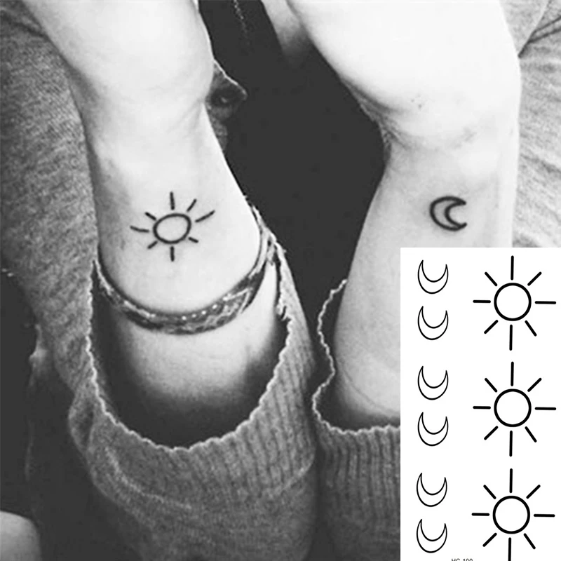 Тату-наклейка с переводным рисунком, милая, красивая, солнце, луна,...