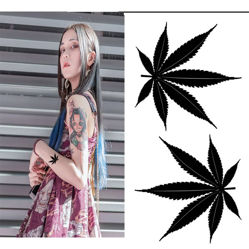 Водостойкая Временная тату-наклейка, пистолет, клевер, кленовый лис...