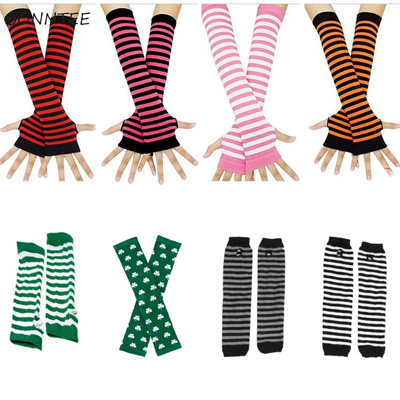 Женские перчатки в полоску, носки, теплые, забавные, для косплея, Г...