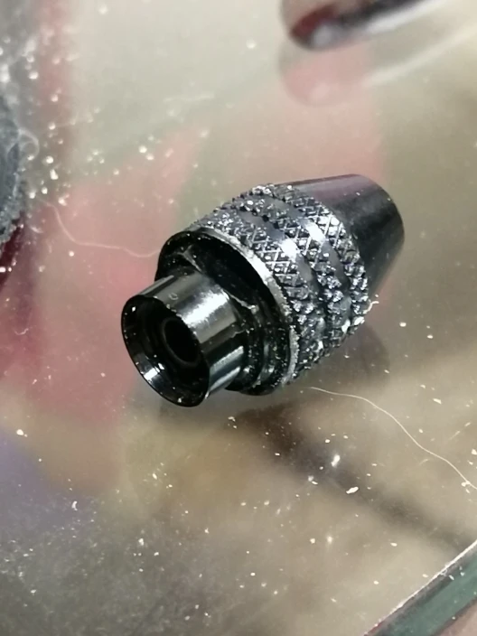 Патрон из алюминевого сплава - не фиксируется самостоятельно, а затягивается вместе с затяжкой губок. Это к сожалению даёт ощутимое биение устанавливаемых таким образом бит.
