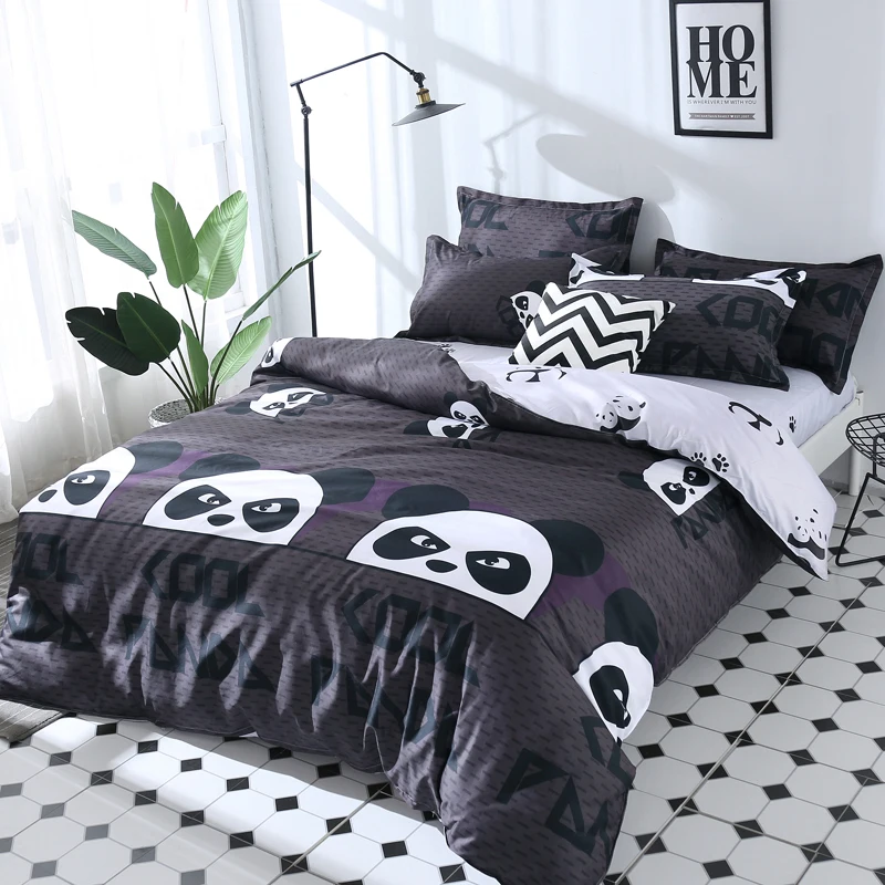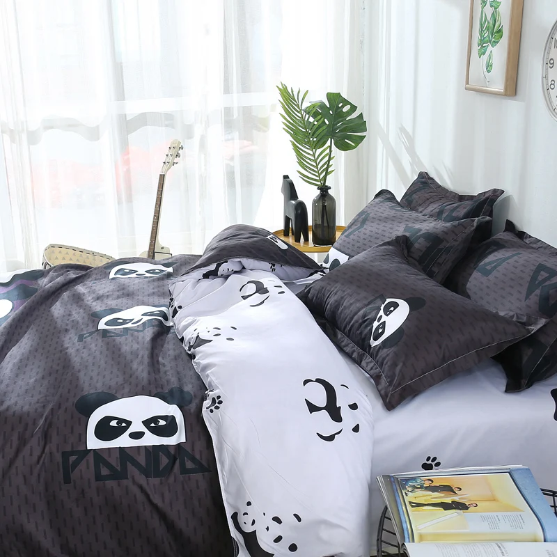 Комплект постельного белья с принтом панды, 2 шт.3 шт., пододеяльник, 1 пододеяльник + 12 наволочек (без одеяла или простыни), двуспальная кровать