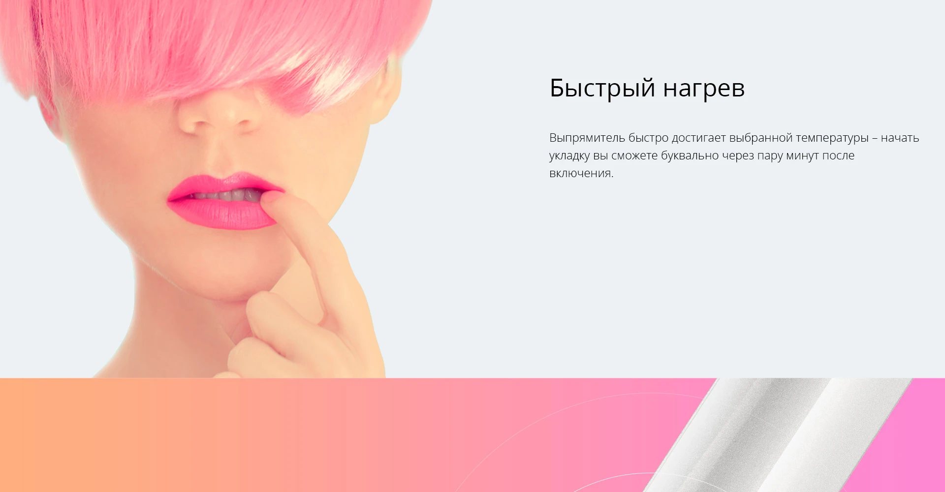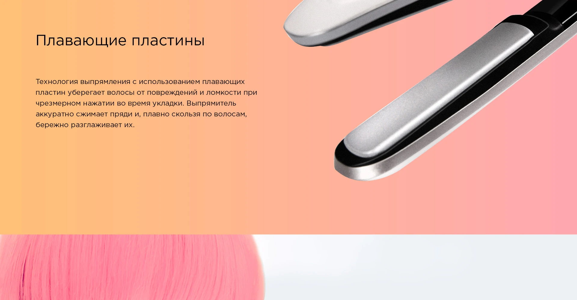 Утюжок немного кривоват и поверхности плохо смыкаются -но выпрямить волосы можно только при сильном нажатии, рука устаёт ! Нагревательные поверхности маленькие по площади . Мне показалось очень неудобный.
