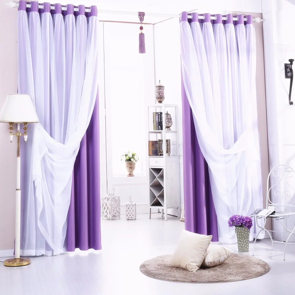 Однотонные двухслойные занавески s с белым тюлем для спальни гостиной и кухни фиолетовые Серые Синие затемняющие занавески