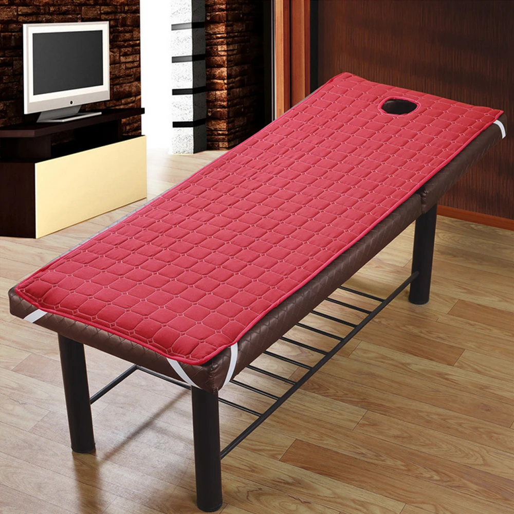 Нескользящий массажный стол для спа-процедур, покрывало для кровати, простыня, коврик с отверстием для лица для салона красотыДетали:Отличное массажное покрывало с отверстием для лица, подходит для массажной кровати размером 185x70 см (73x28 дюймов)Поверхность из мягкой ткани, элегантная сетка с 3D тиснением, демонстрирующая изысканное мастерство и надежное качествоНаполнители из перьевой ткани приятны для кожи клиента и защищают от аллергии, обеспечивают ощущение мягкостиКонструкция с резинками на четырех углах, эффективно уменьшит смещение наматрасникаПодходит для салонов красоты, массажных столов, отелей, косметических коек, больниц и т. д.Спецификация:Материал: полиэфирное волокноРазмер: 185x70 см/72,83x27,56 дюймаДоступные цвета: синий, серый, красный, розовыйПожалуйста, сообщите нам цвет, который вы хотите, когда вы его покупаете, иначе мы вышлем его наугад.Комплектация:1 x Массажная прокладка на кроватьПримечание:1. Из-за световых эффектов и настроек яркости/контрастности монитора и т. д. фактический цвет изделия может немного отличаться от изображения.2. Измерение вручную может отличаться на 1-2 см. Пожалуйста, внимательно проверьте и сравните размер перед покупкой, спасибо! (1 сантиметр = 0,39 дюйма)