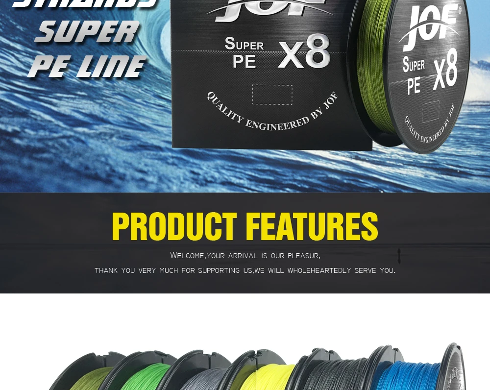 Плетеная рыболовная леска JOF 8, 150 м, 300 м, 500 м, 8 нитей, многонитевая полиэтиленовая леска 15, 20, 30, 40, 50, 60, 80, фунтов