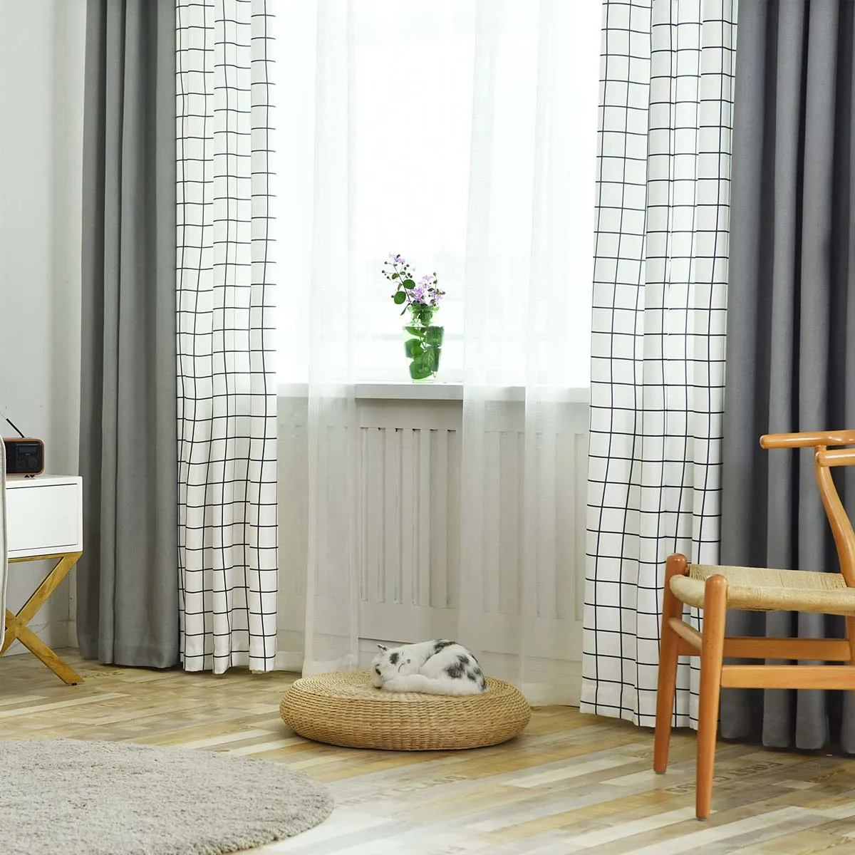 Современные Простые серые шторы с прострочкой для спальни, гостиной, клетчатые дизайнерские драпировки, украшения для балкона