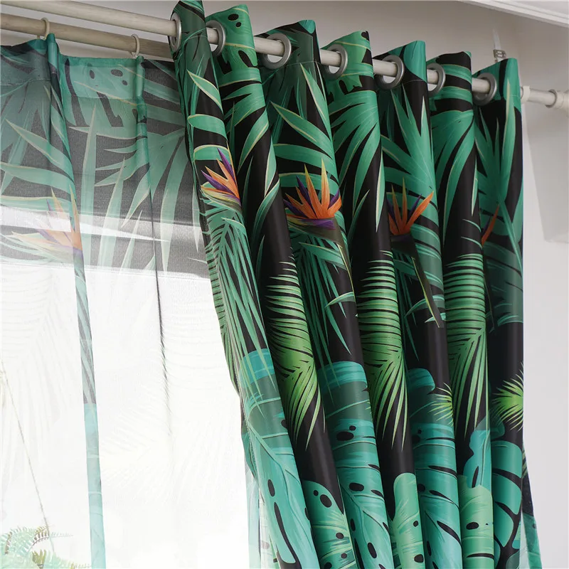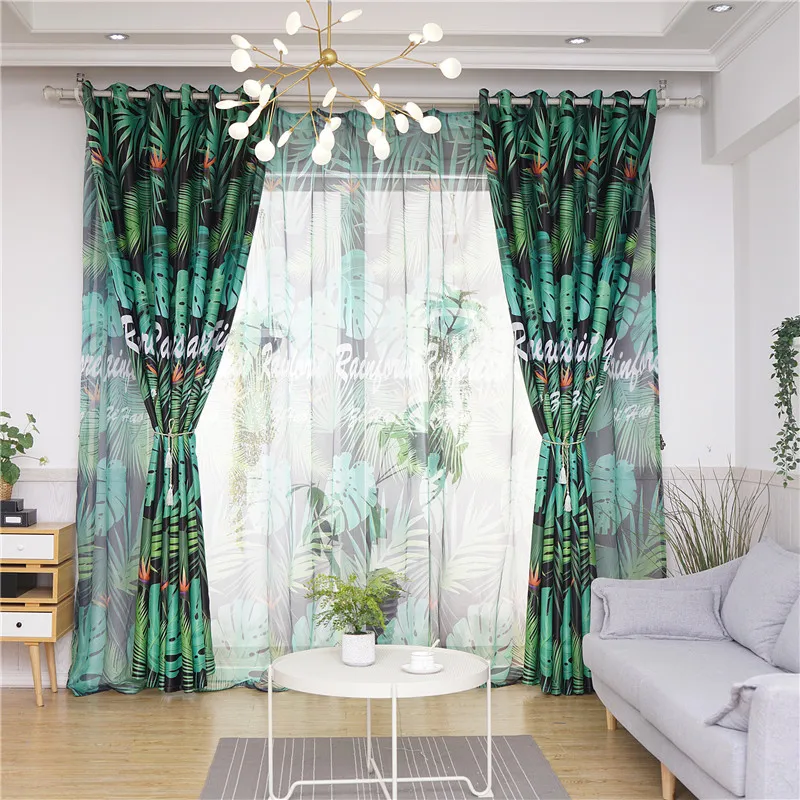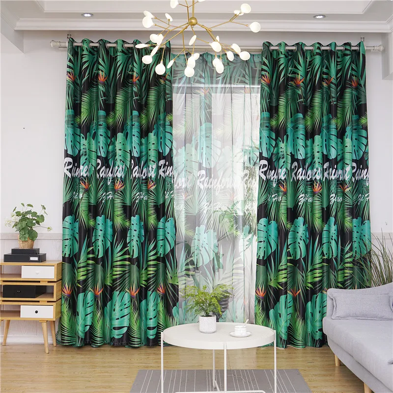 Современные затемненные шторы с принтом зеленых растений, занавески, готовые шторы для гостиной, спальни