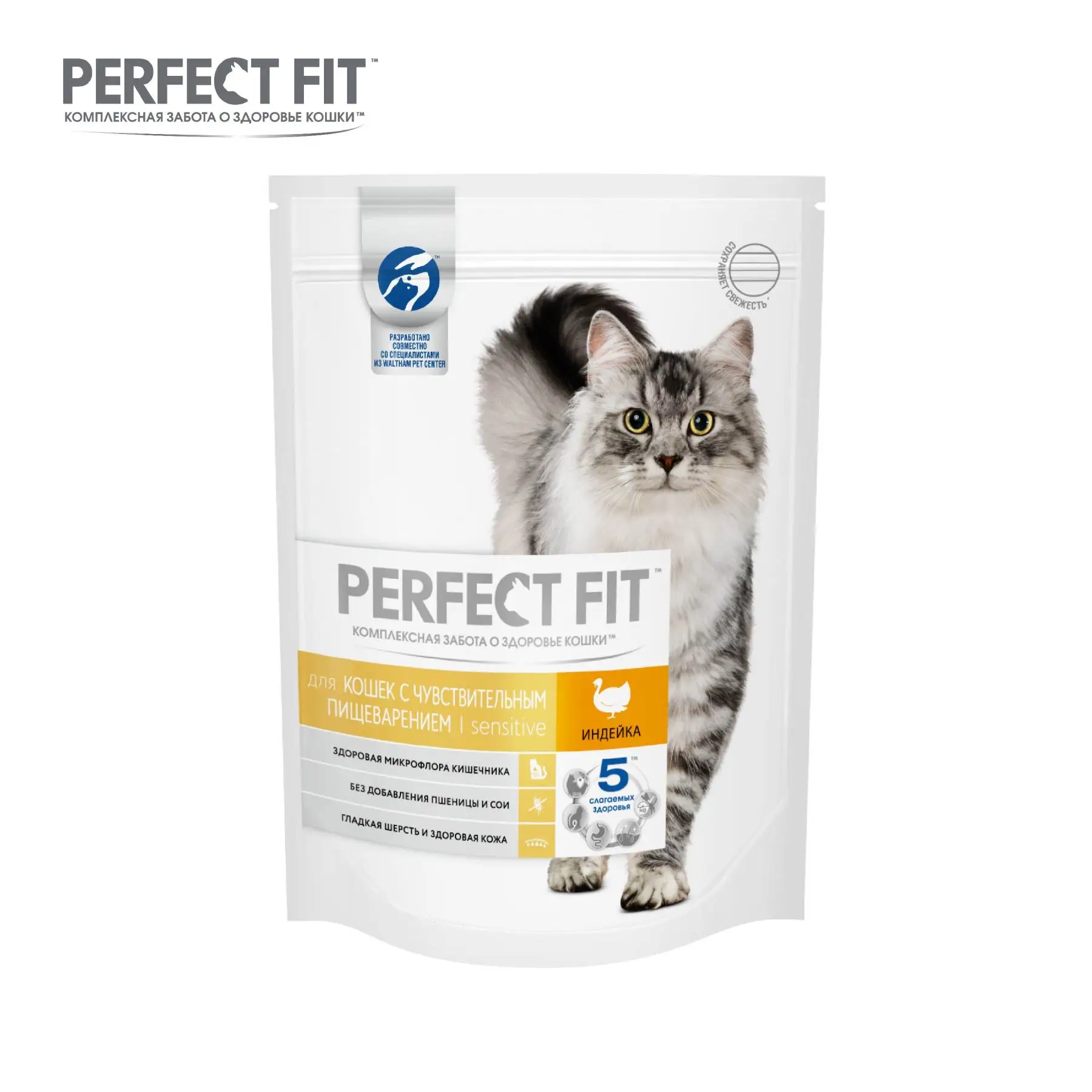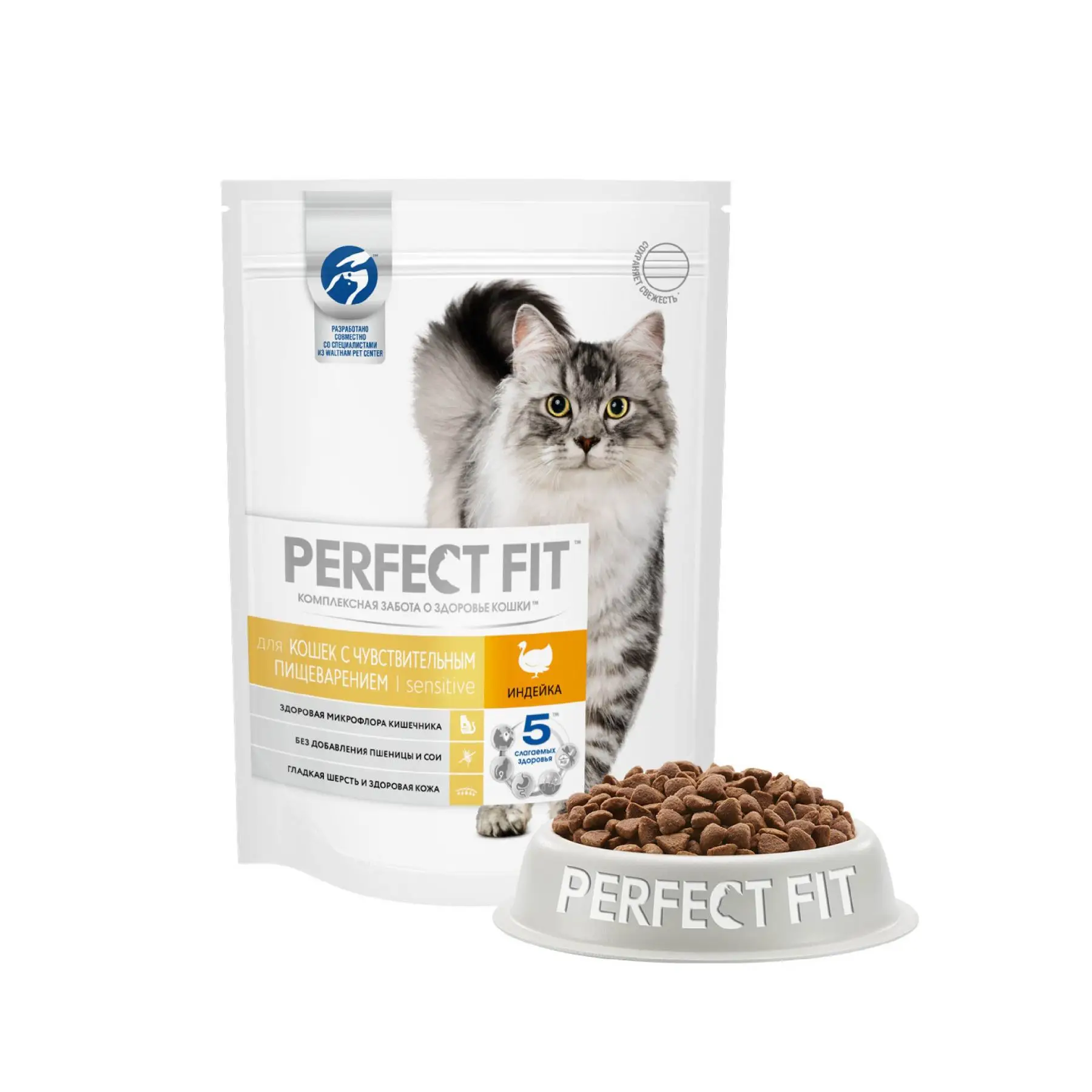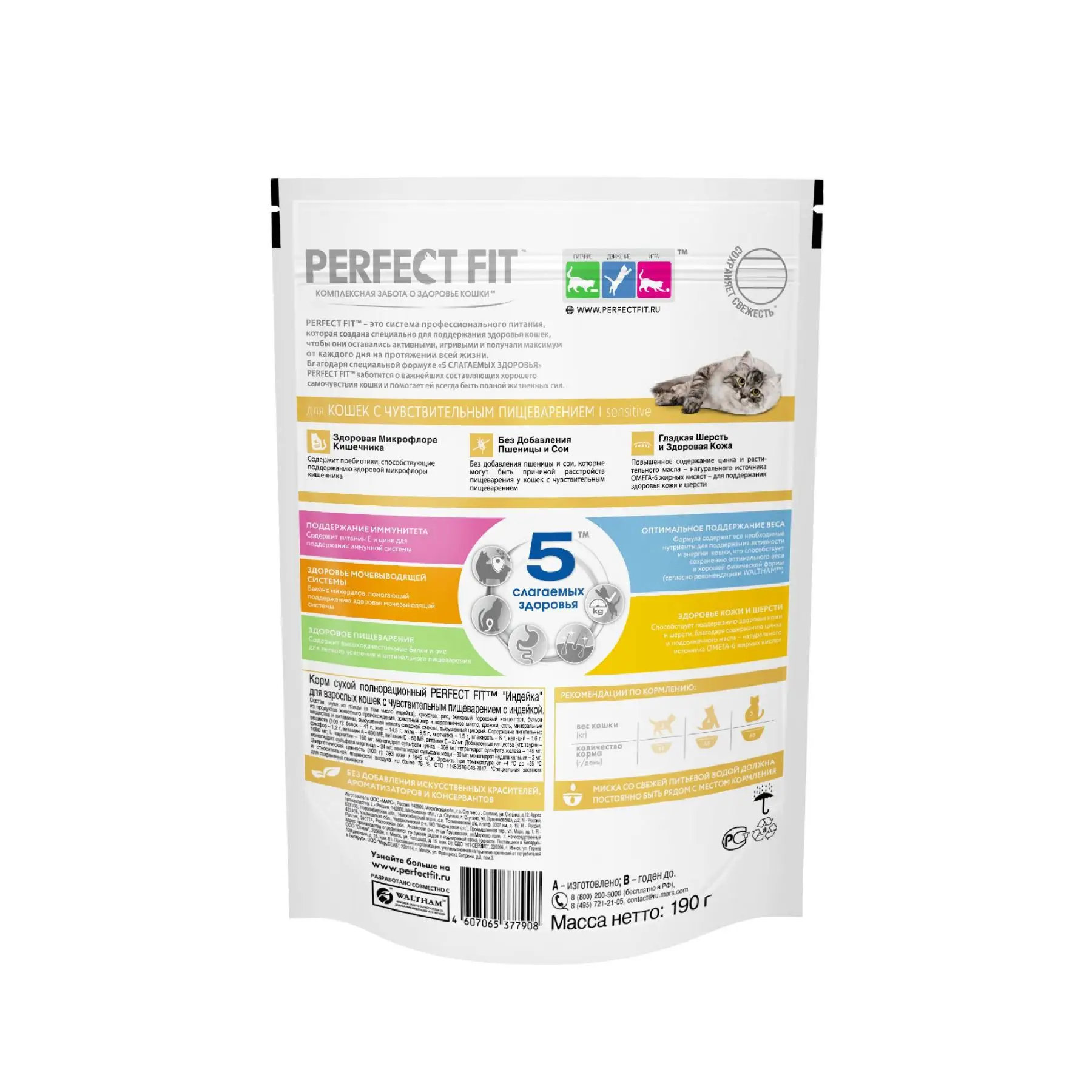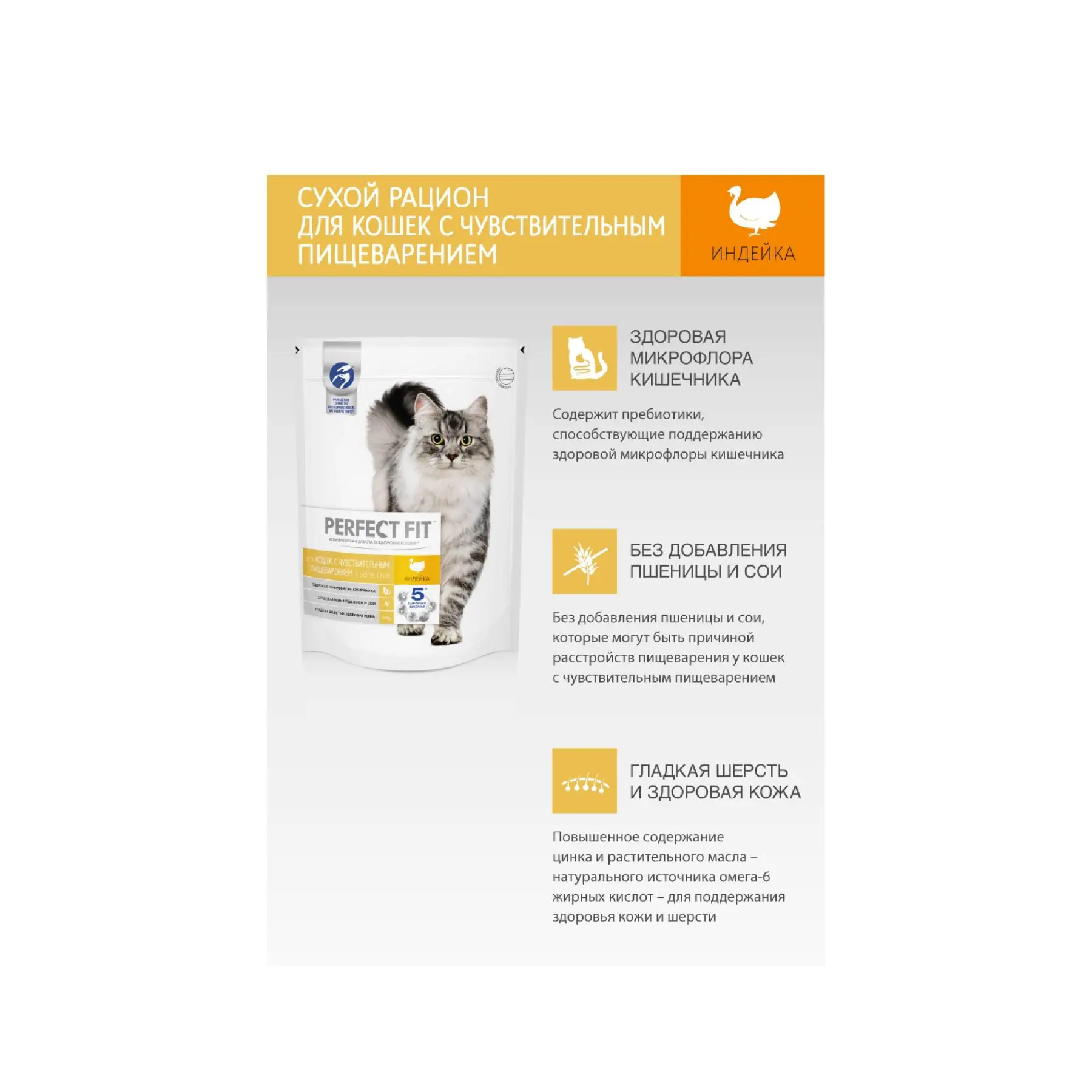 Сухой корм PERFECT FIT "Индейка" для взрослых кошек с чувствительным пищеварением,190г