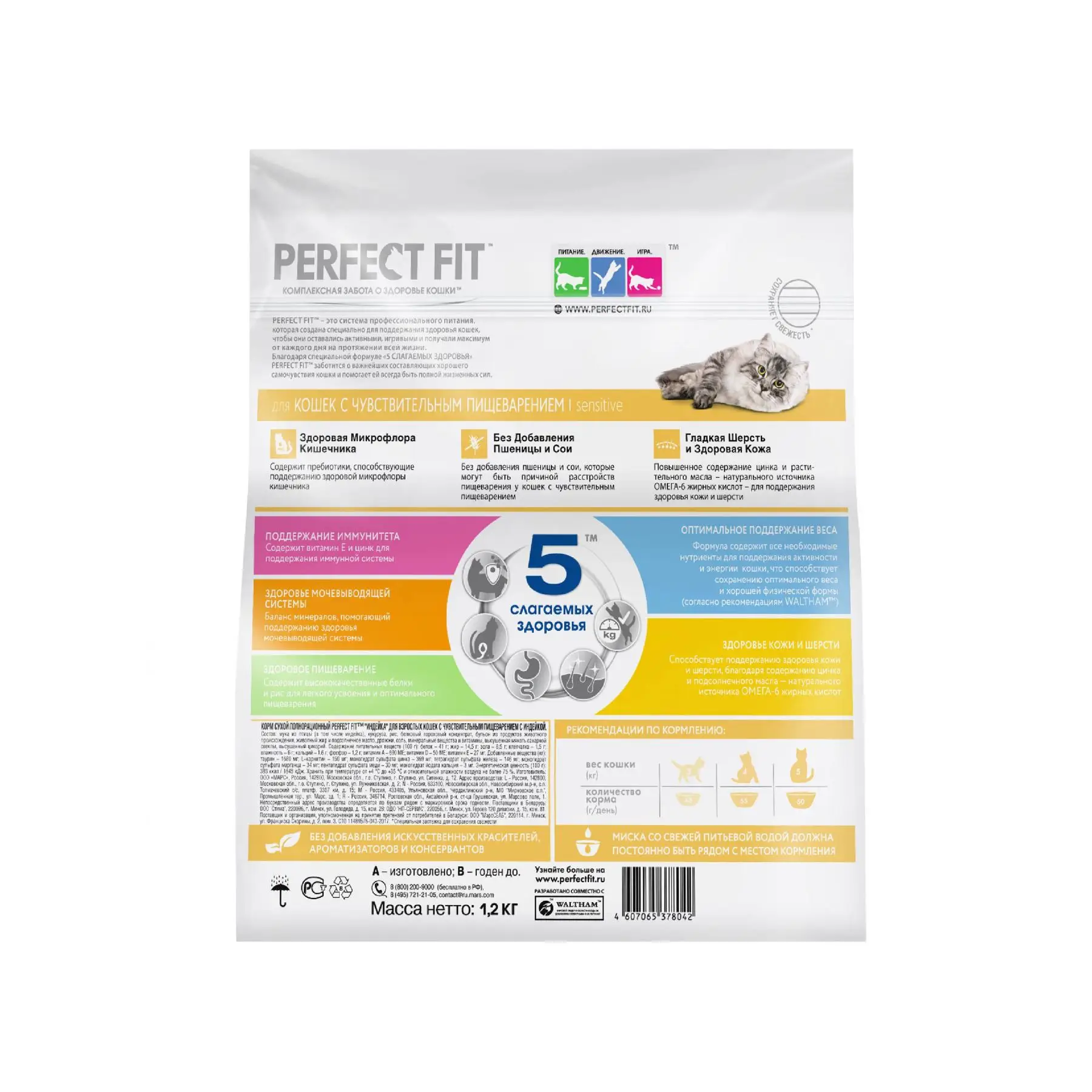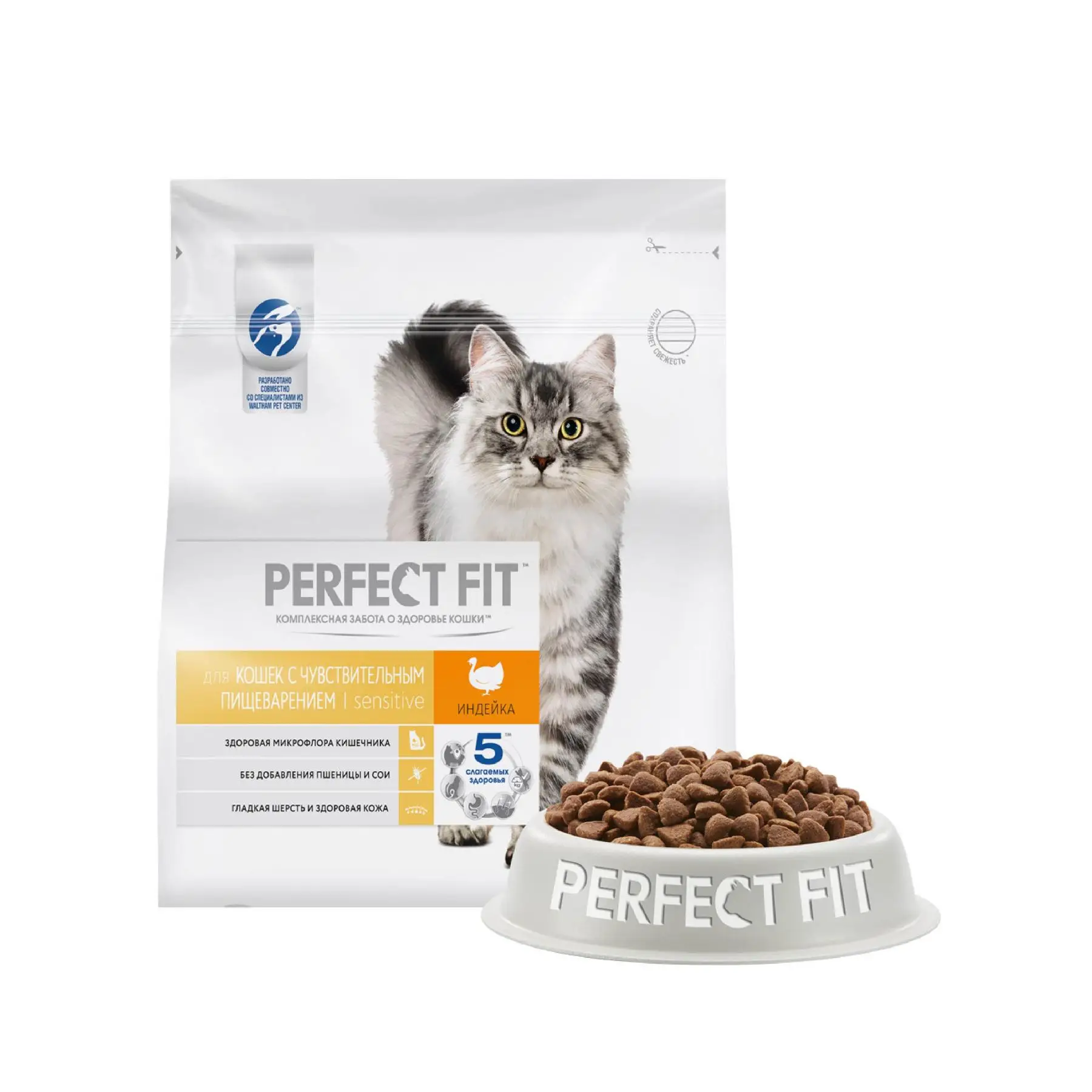 Сухой корм PERFECT FIT "Индейка" для взрослых кошек с чувствительным пищеварением, 1.2кг