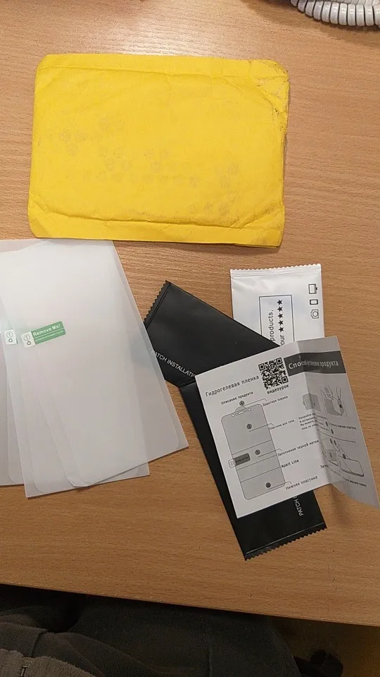 Пришло достаточно быстро. Мелкий пакет, внутри пупыркой выложен. ничего не помялось. В комплекте: сама плёнка, карточка для разглаживания, спирт.салфетка, наклейки для удаления пыли, и небольшая тряпочка из микрофибры для очистки экрана + инструкция по установке Товаром доволен, на galaxy s8 легла как влитая