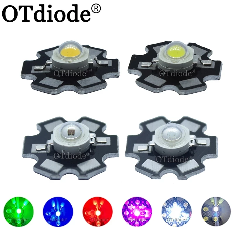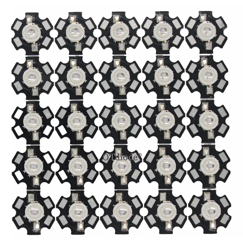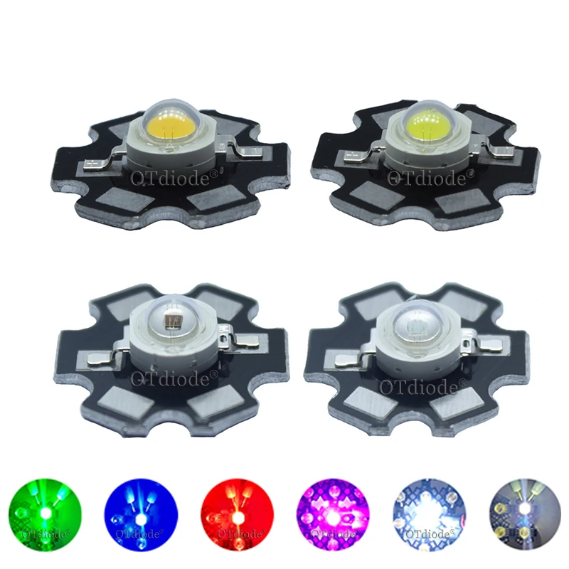 Светодиодный высокой мощности, 10 шт., 1 Вт, 3 Вт, белый, теплый, белый, зеленый, синий, темно-красный, 660нм, королевский синий, с 20 мм черной звездой, печатной платой