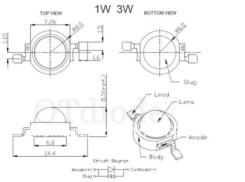 Название продукта: 1 Вт 3 Вт высокомощные светодиодные чипы для сварки на печатной плате