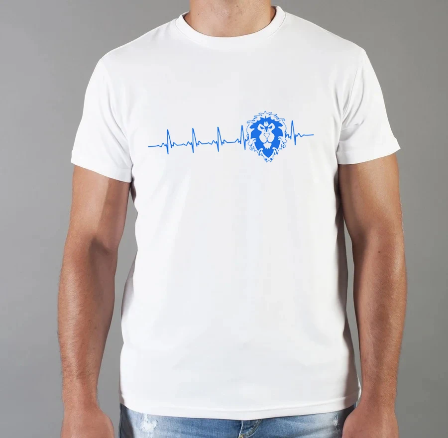 Футболка Мужскаяженская из 100% хлопка, тенниска унисекс с рисунком сердцебиения Орды альянса, Черная майка