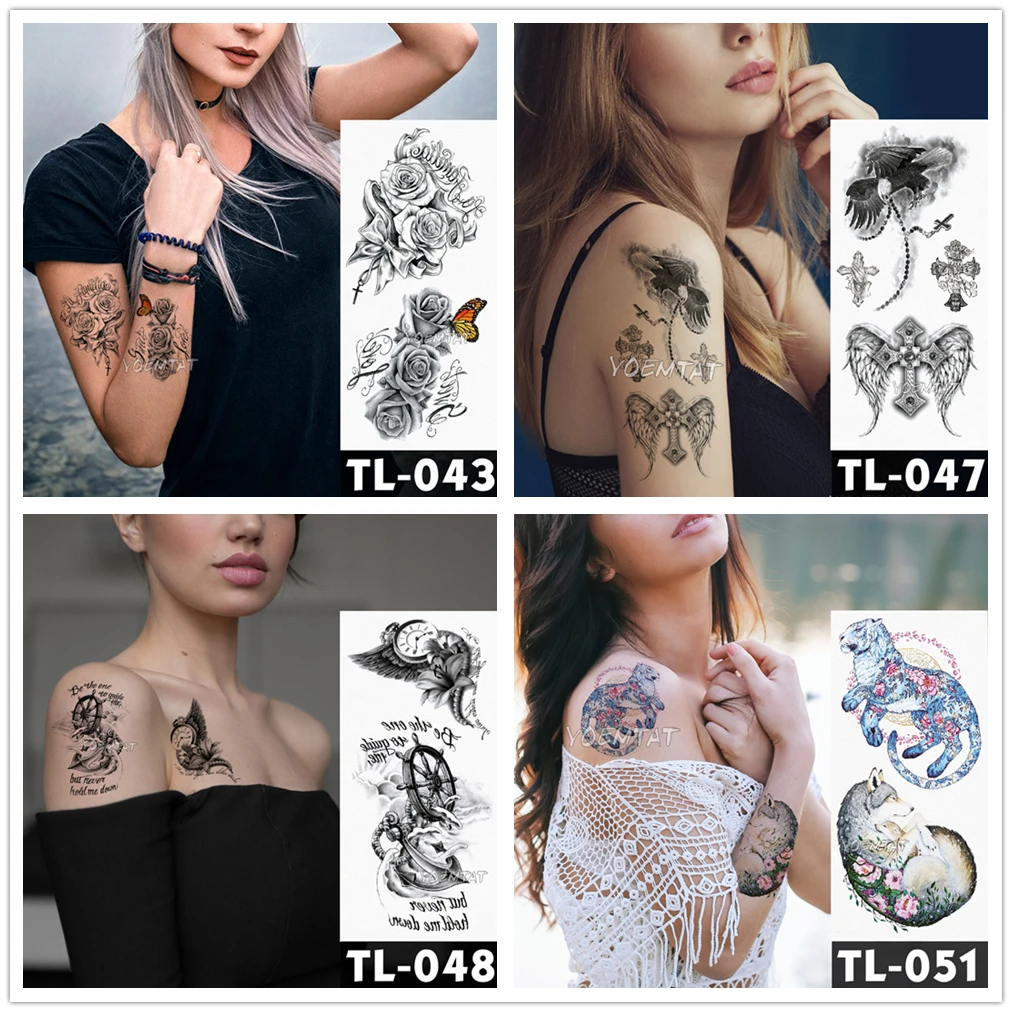 Эскиз крест перо цветок Переводные татуировки наклейки Женщины хна ...